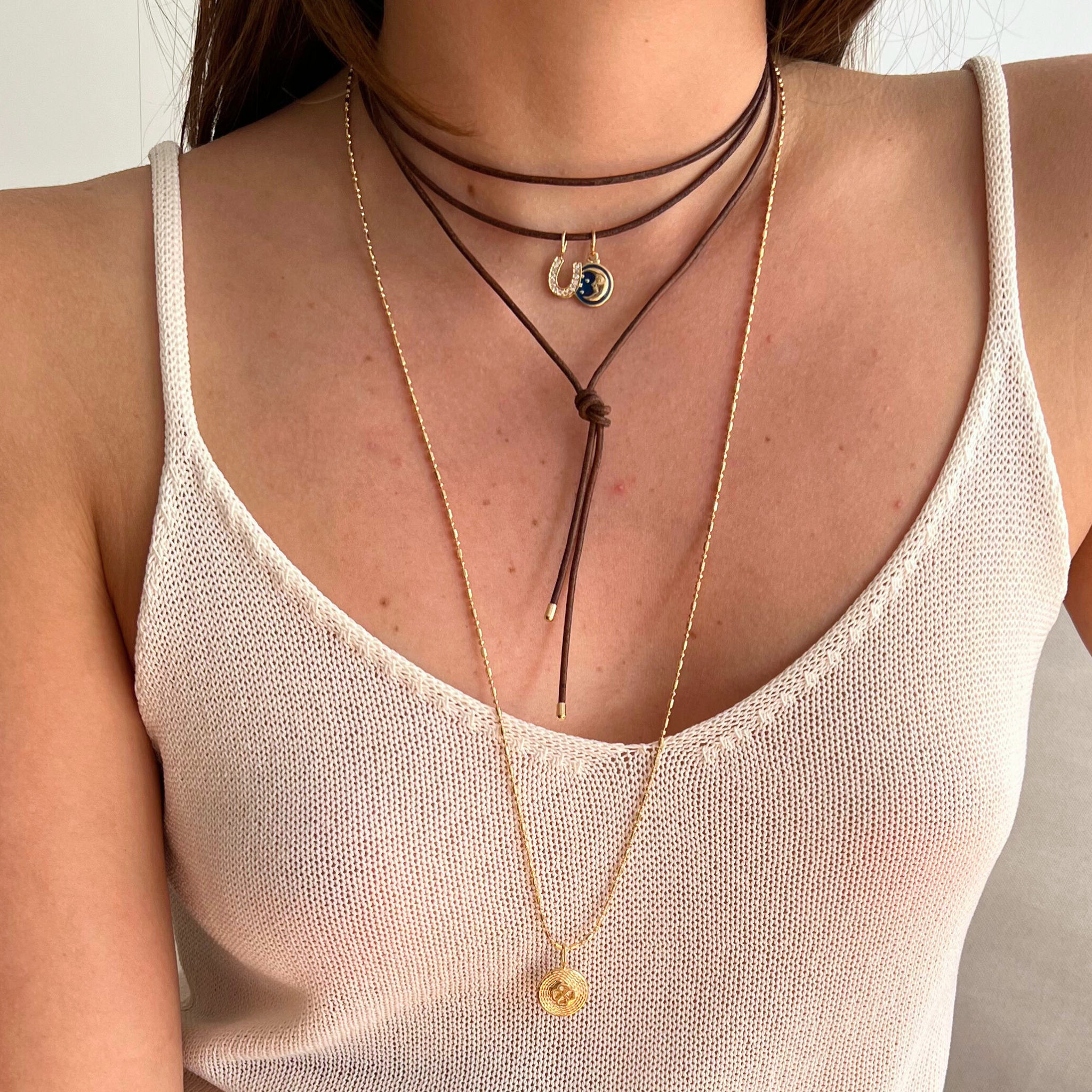 A Choker Couro Preto é feita em couro natural com acabamento de verniz, trazendo um leve brilho, discreto, com 1,30m de comprimento e 2mm de espessura, é perfeita para dar várias voltas, seja como choker, pulseira ou em camadas, criando diferentes estilos. As ponteiras...