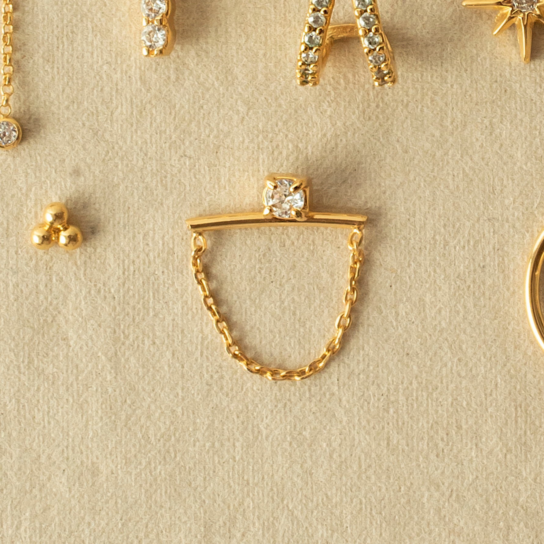 A Corrente Lina é super delicada para usar por trás do brinco, criando um efeito semelhante ao de uma argola, mas com mais movimento! Leve e versátil, transforma qualquer brinco de pino com um detalhe moderno e super diferente.