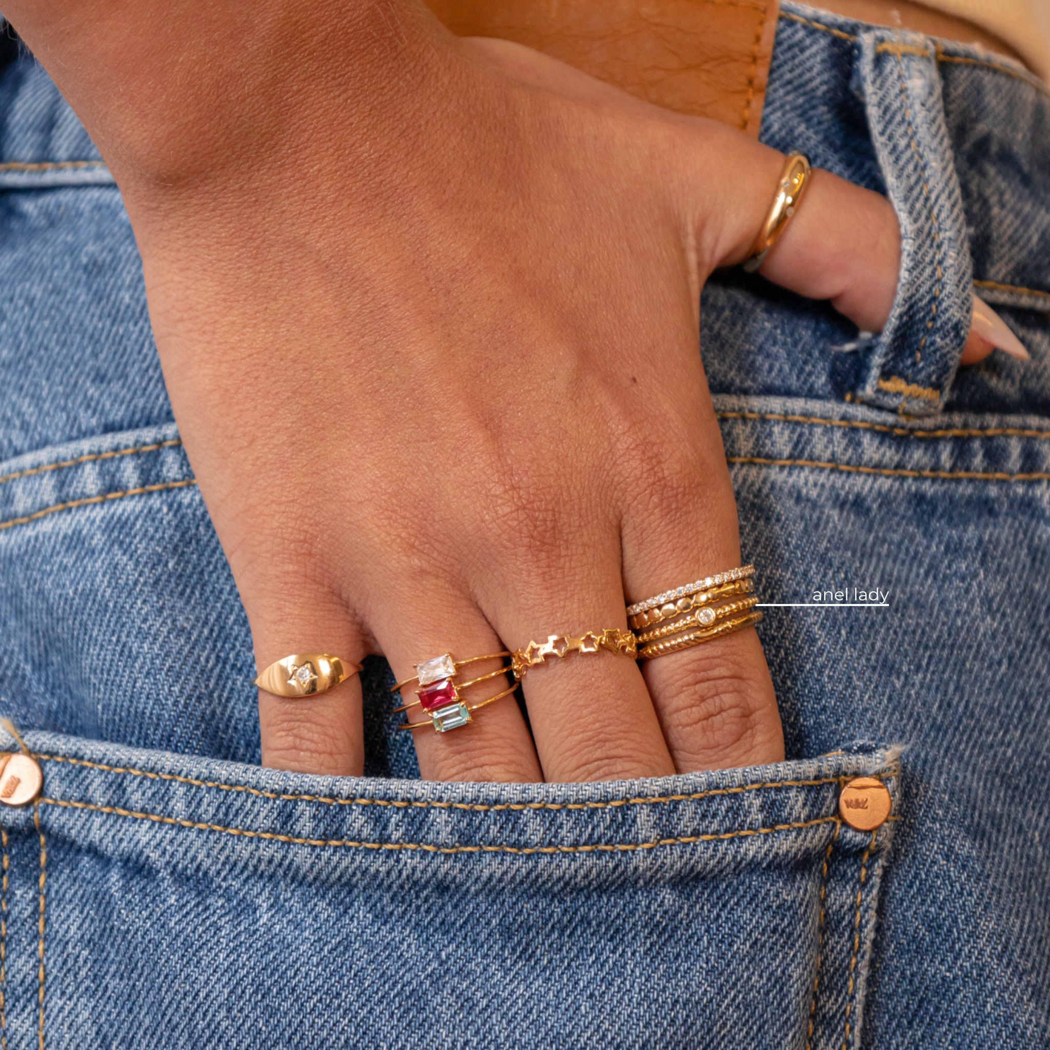 Nosso anel é banhado a ouro 18 quilates com zircônias, garantindo um brilho sofisticado e duradouro. Além disso, ele possui uma camada extra de proteção, desenvolvida especialmente para minimizar o risco de alergias, proporcionando conforto e segurança.