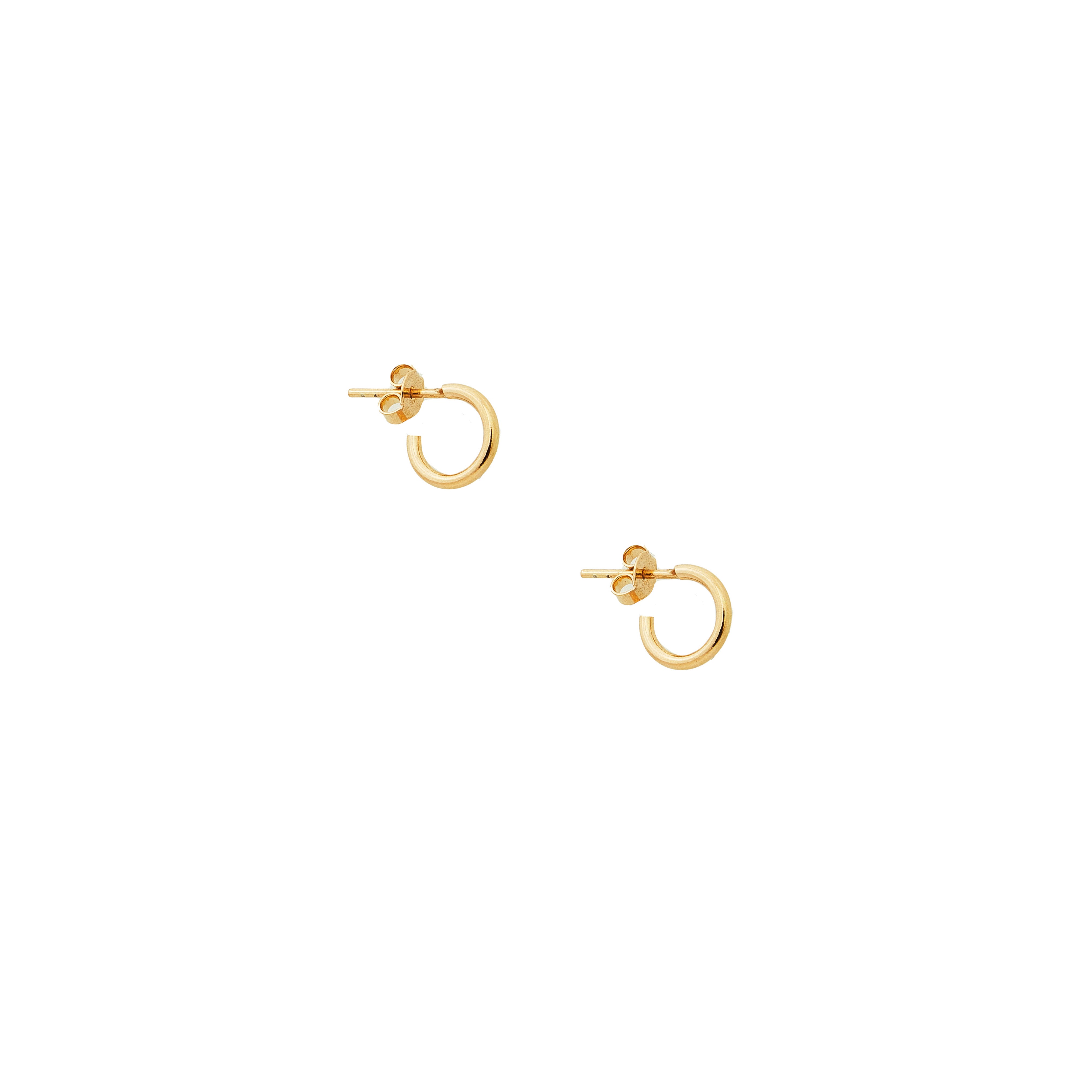 descrição: mini argola de metal banhada a ouro 18k com película de proteção contra alergias.