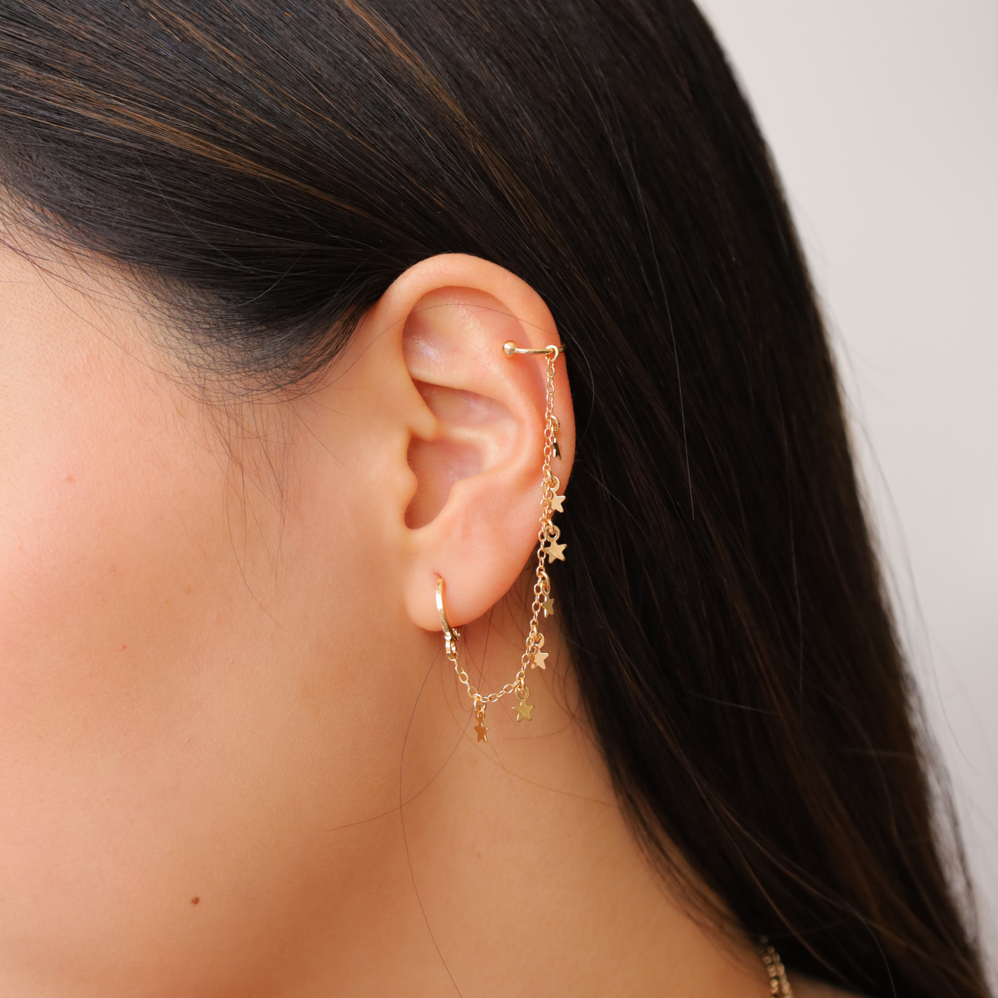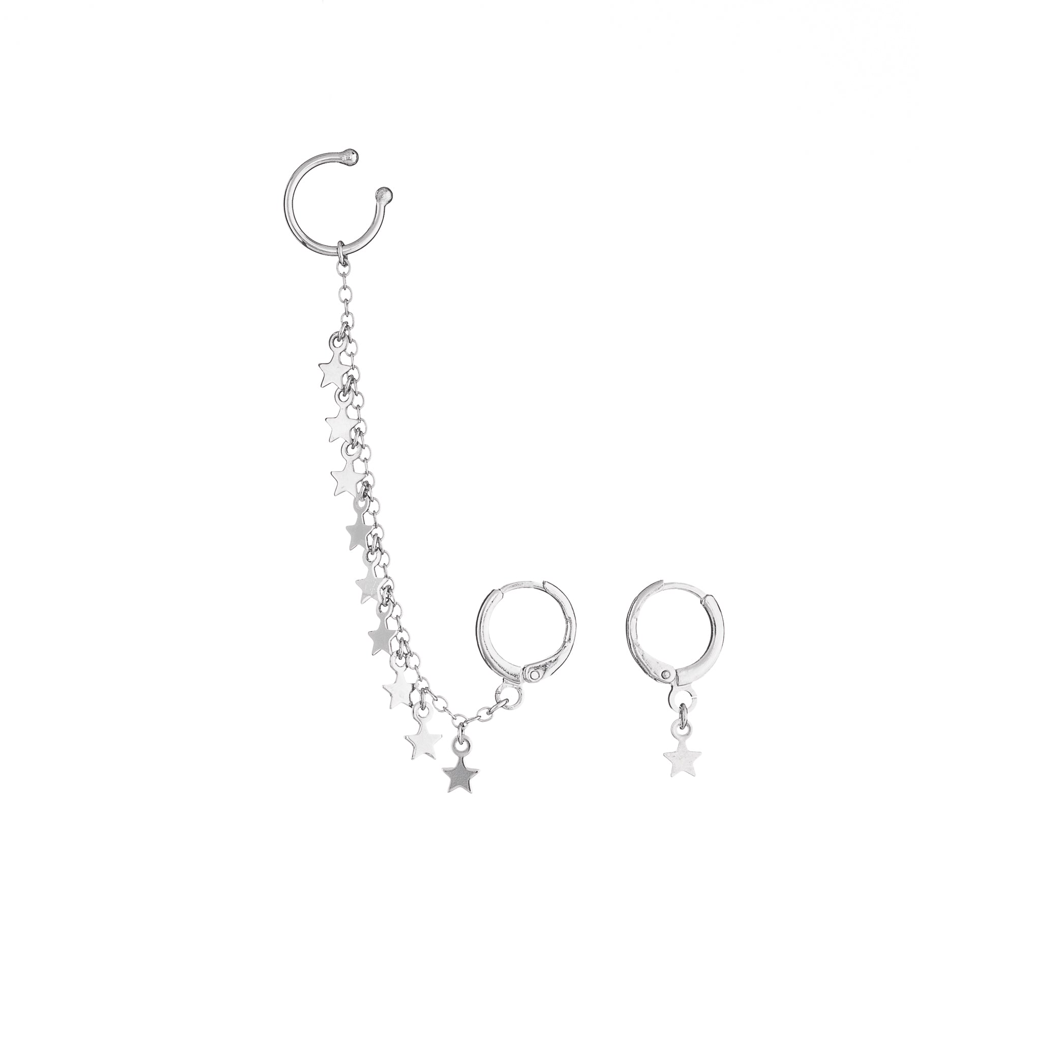 nosso mixed stars combina um par de argolinhas de "click" com piercing de pressão ajustável.