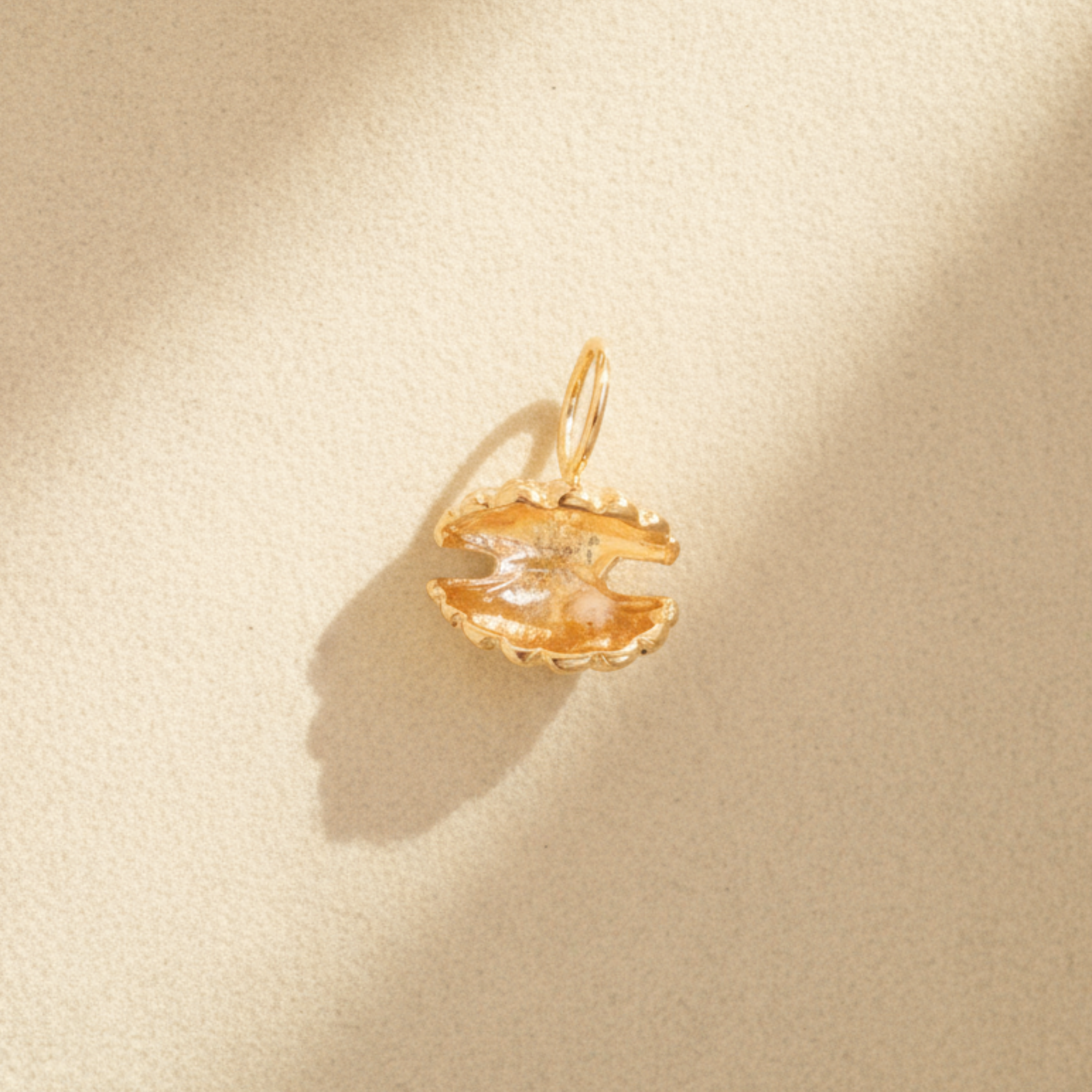 O Charm Concha Aberta é um pingente de concha banhado a ouro 18k, delicado e cheio de charme. Seu design traz a concha do mar aberta com um detalhe esmaltado que imita uma mini pérola no centro. Pequeno, elegante e 100% hipoalergênico (não causa alergia), é perfeito para trazer frescor e leveza ao seu mix de charms.