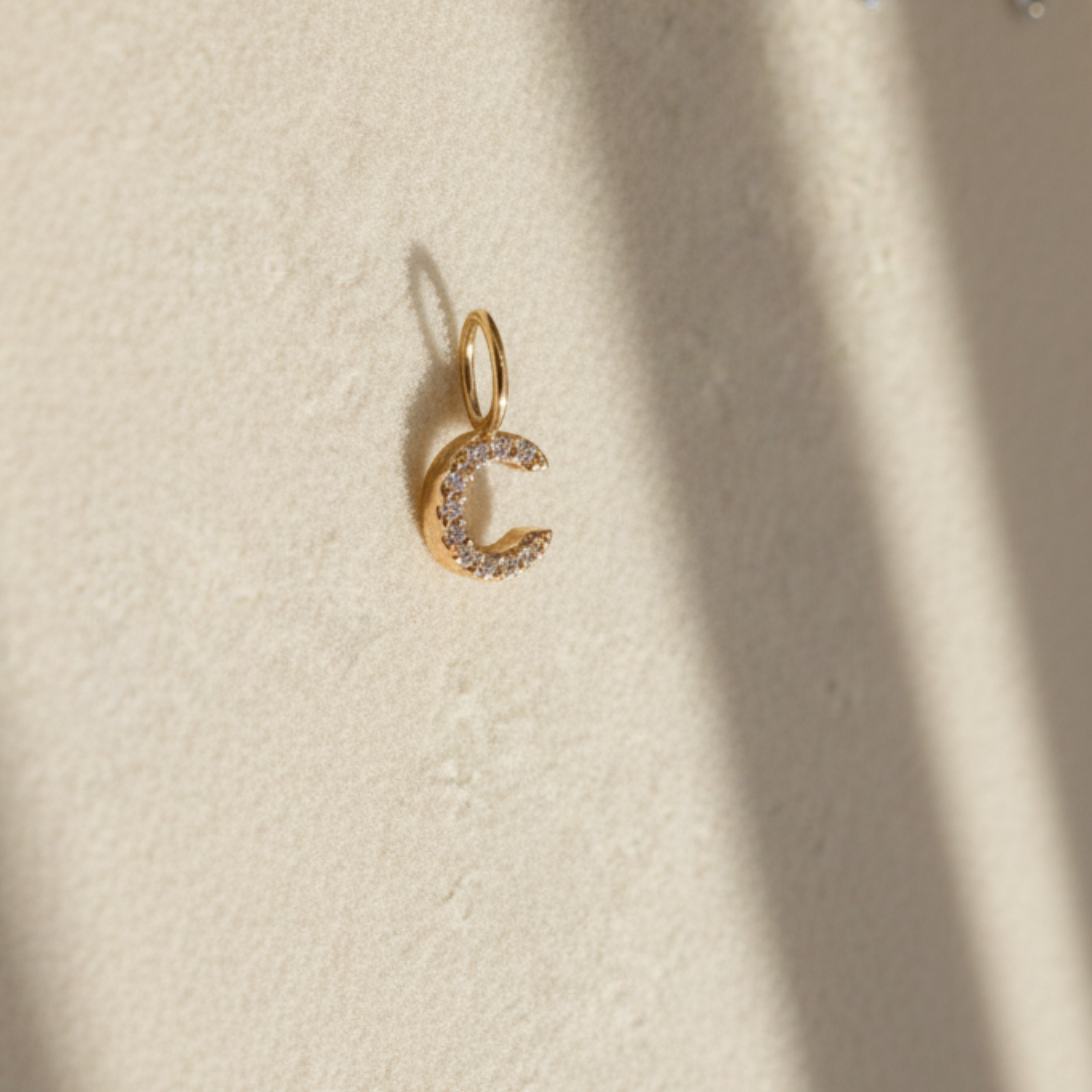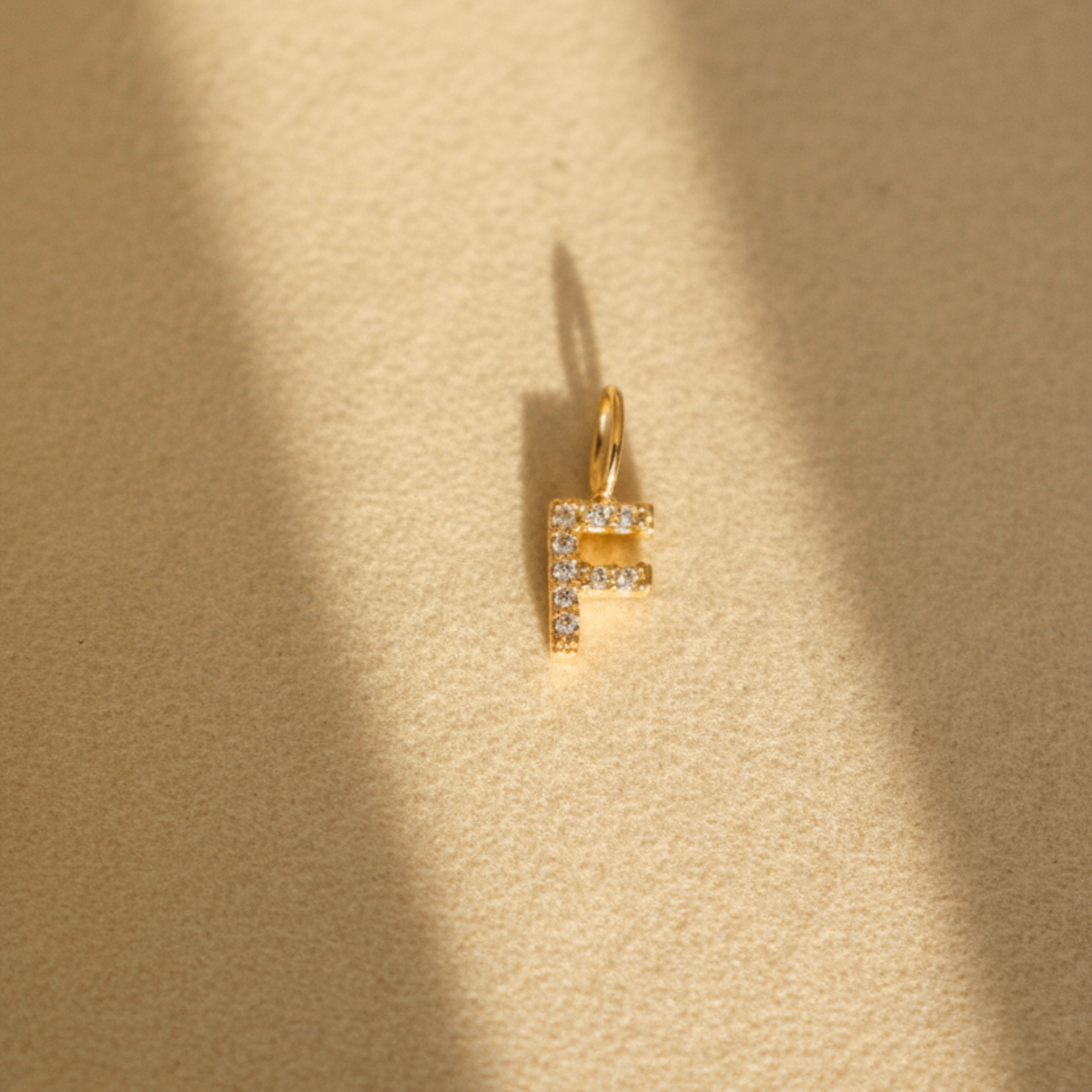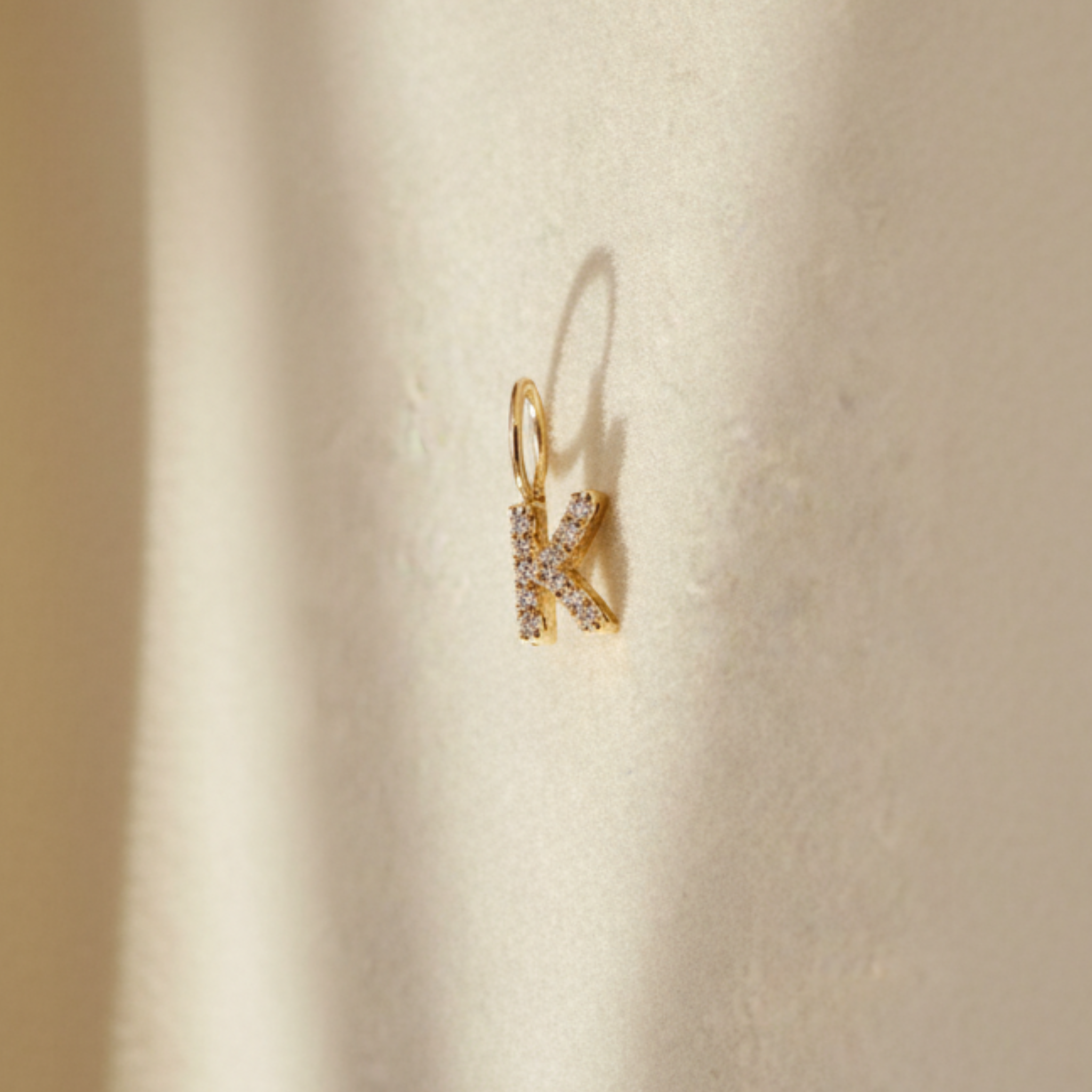 O Charm Inicial é um pingente delicado banhado a ouro 18k, todo cravejado com cristais brilhantes. Leve, hipoalergênico (não causa alergia) e cheio de significado, é perfeito para destacar a letra da sua inicial ou de alguém especial no seu colar de charms.