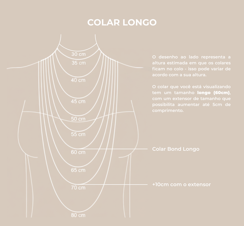 A versão longa da nossa amada Choker Bond, o Colar Bond Longo tem 60cm de comprimento, uma base super versátil, cria um caimento elegante e leve, perfeito para combinar com charms, ou usar sozinho!