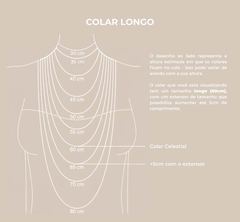 Celestial é um colar longo, banhado a ouro com um pingente de chapinha de pequenas estrelas de zircônias cravejadas — um acessório leve com brilho discreto.