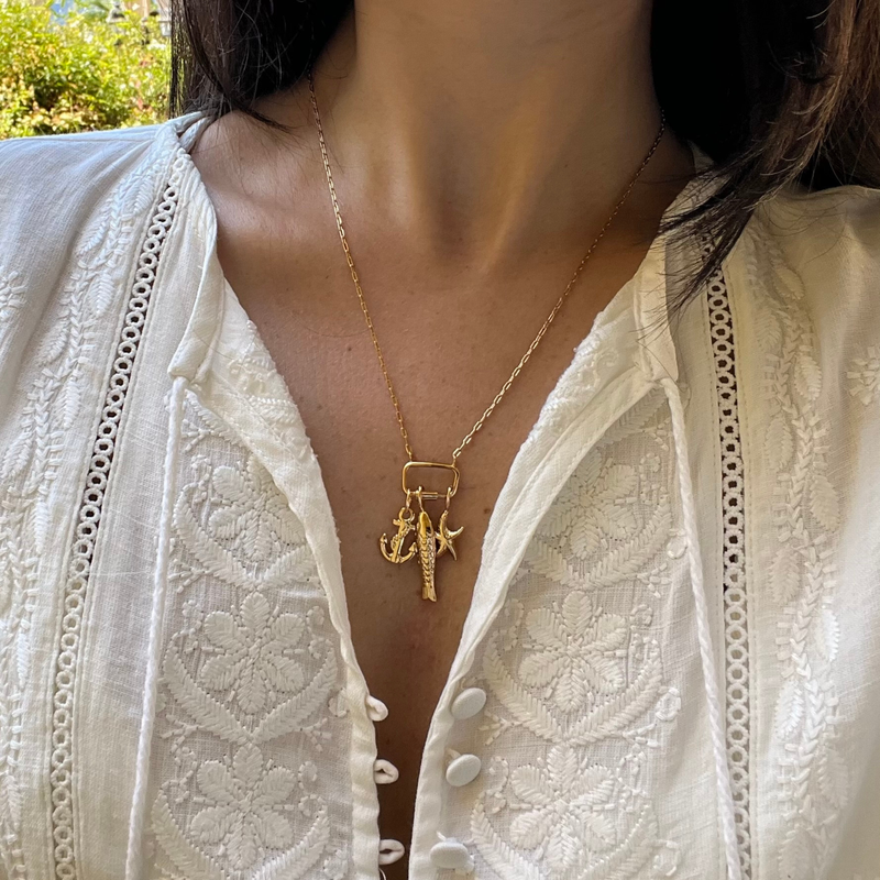 O Charm Rosca é um colar banhado a ouro 18k com design moderno e funcional, desenvolvido para quem ama acessórios personalizáveis. Seu diferencial está no fecho em formato de rosca retangular, que abre e fecha com segurança, permitindo encaixar diferentes charms e criar um colar único.