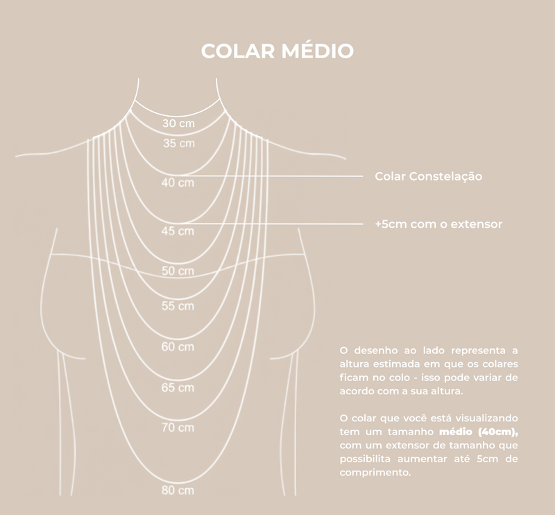 tamanho: colar 40cm + 5 cm de extensor no fecho.