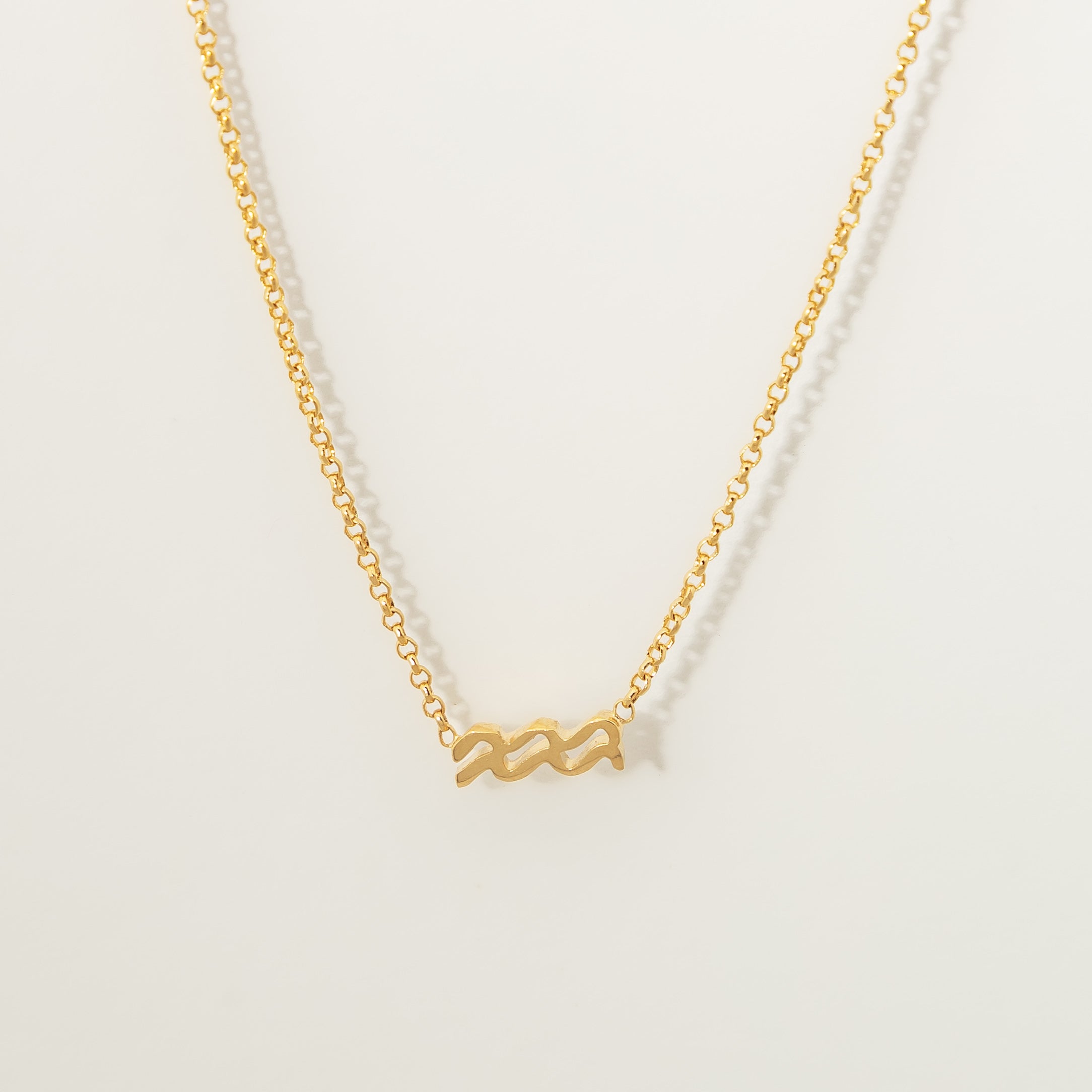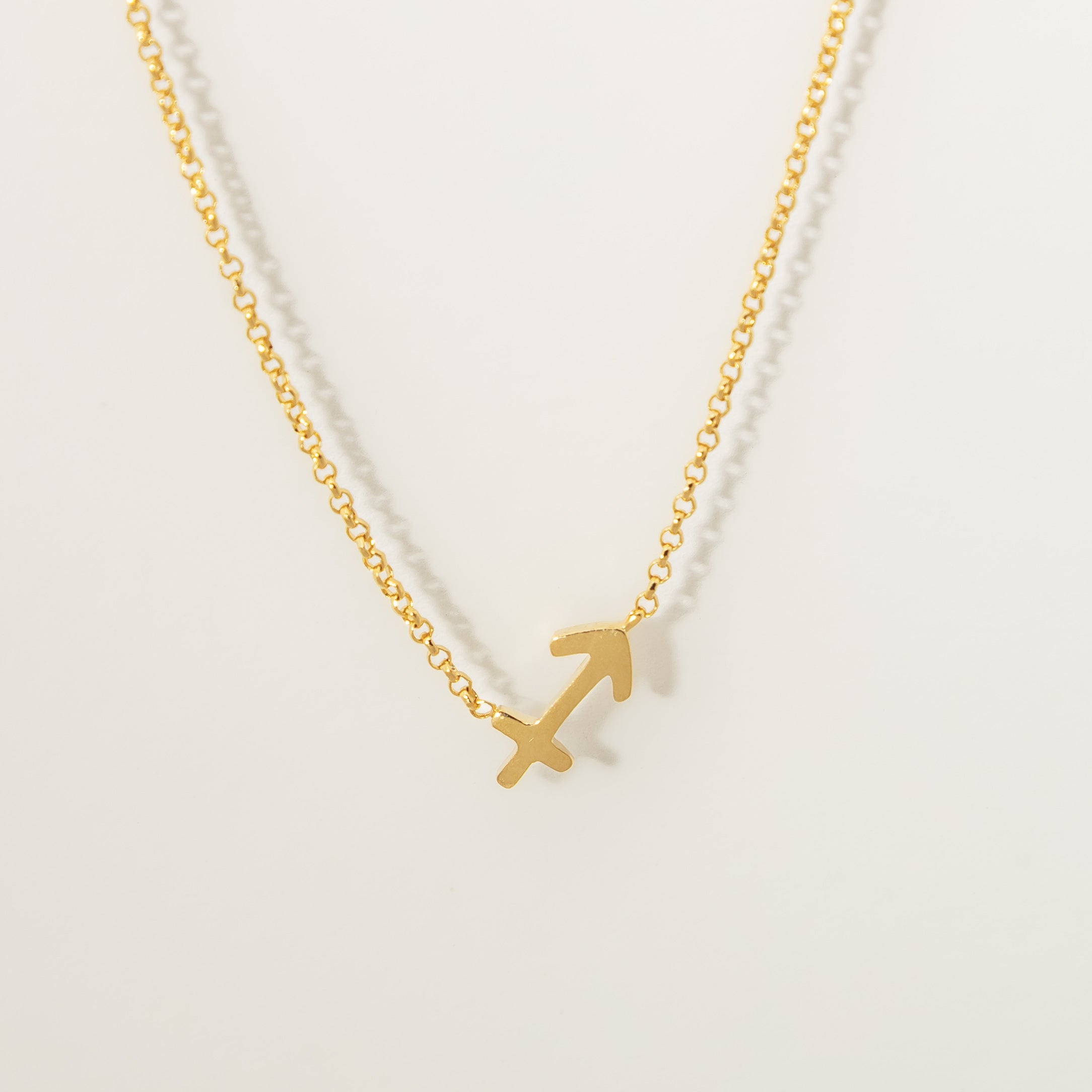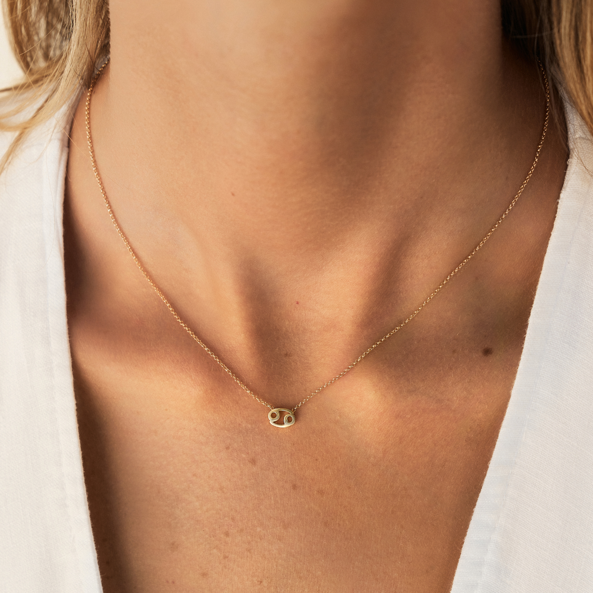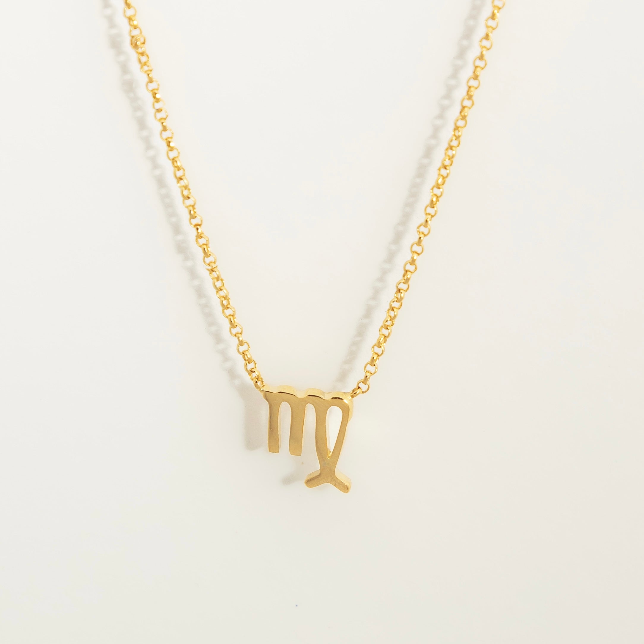 O Cosmic é um colar feminino curto e banhado a ouro, com um pingente delicado com o símbolo de seu signo — você pode usar sozinho ou combinar com outros colares pra criar um mix.