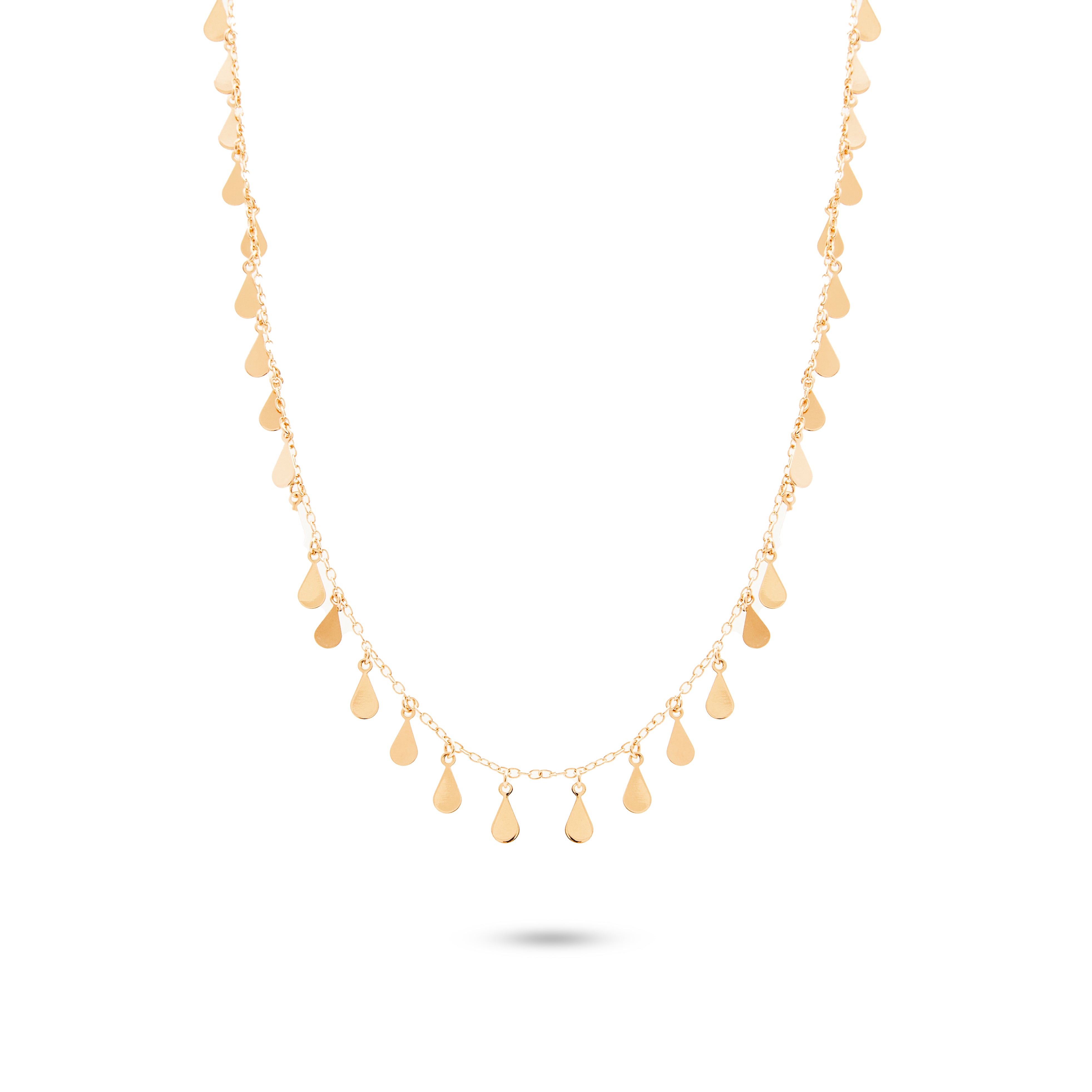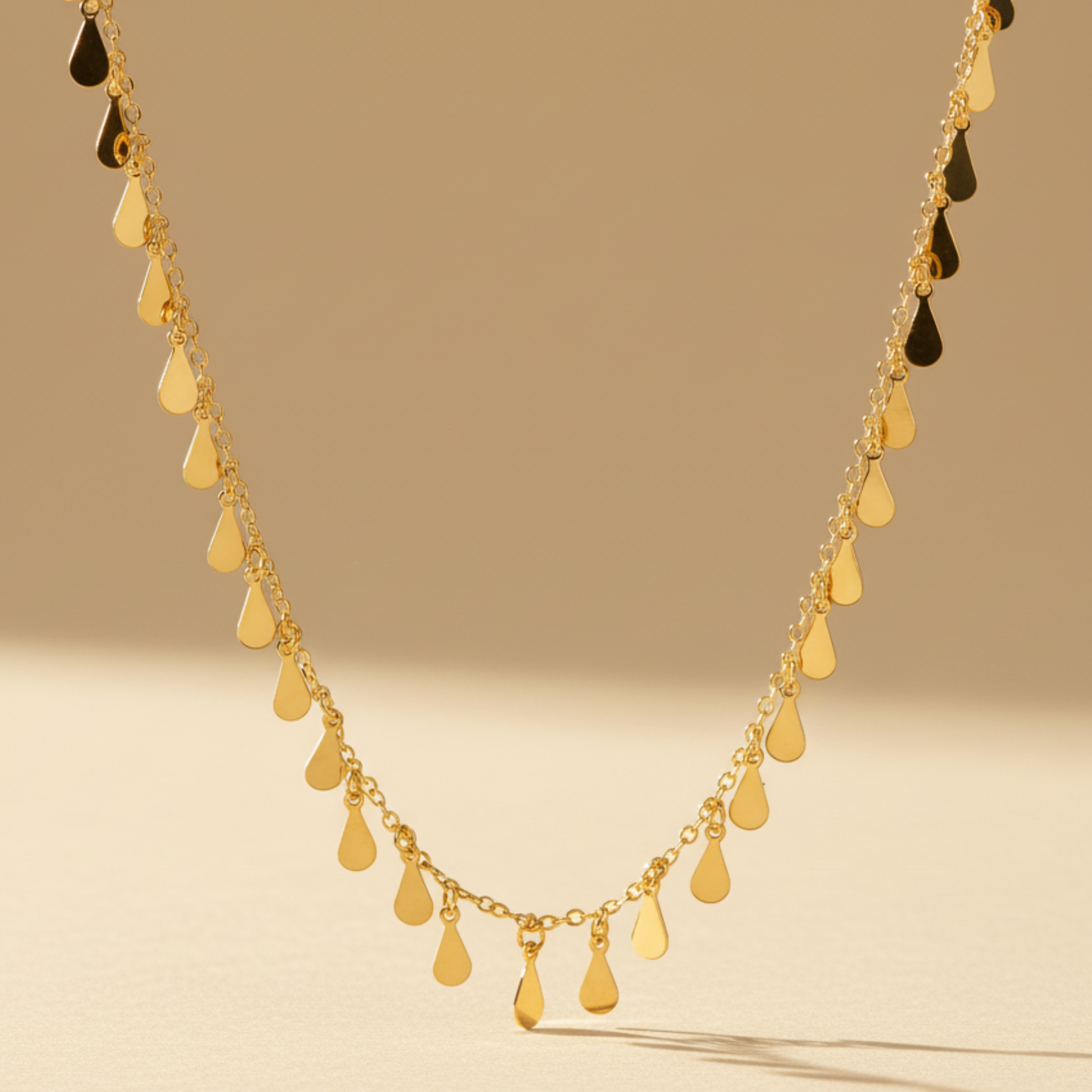 um dos nossos queridinhos best sellers: colar longo com pingentes de gotinhas distribuídos ao longo da corrente banhada a ouro 18k com película de proteção contra alergias.