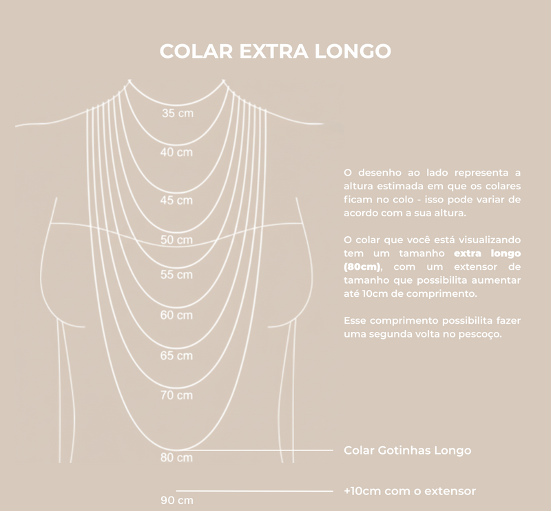 tamanho: colar 80cm + 10 cm de extensor no fecho.