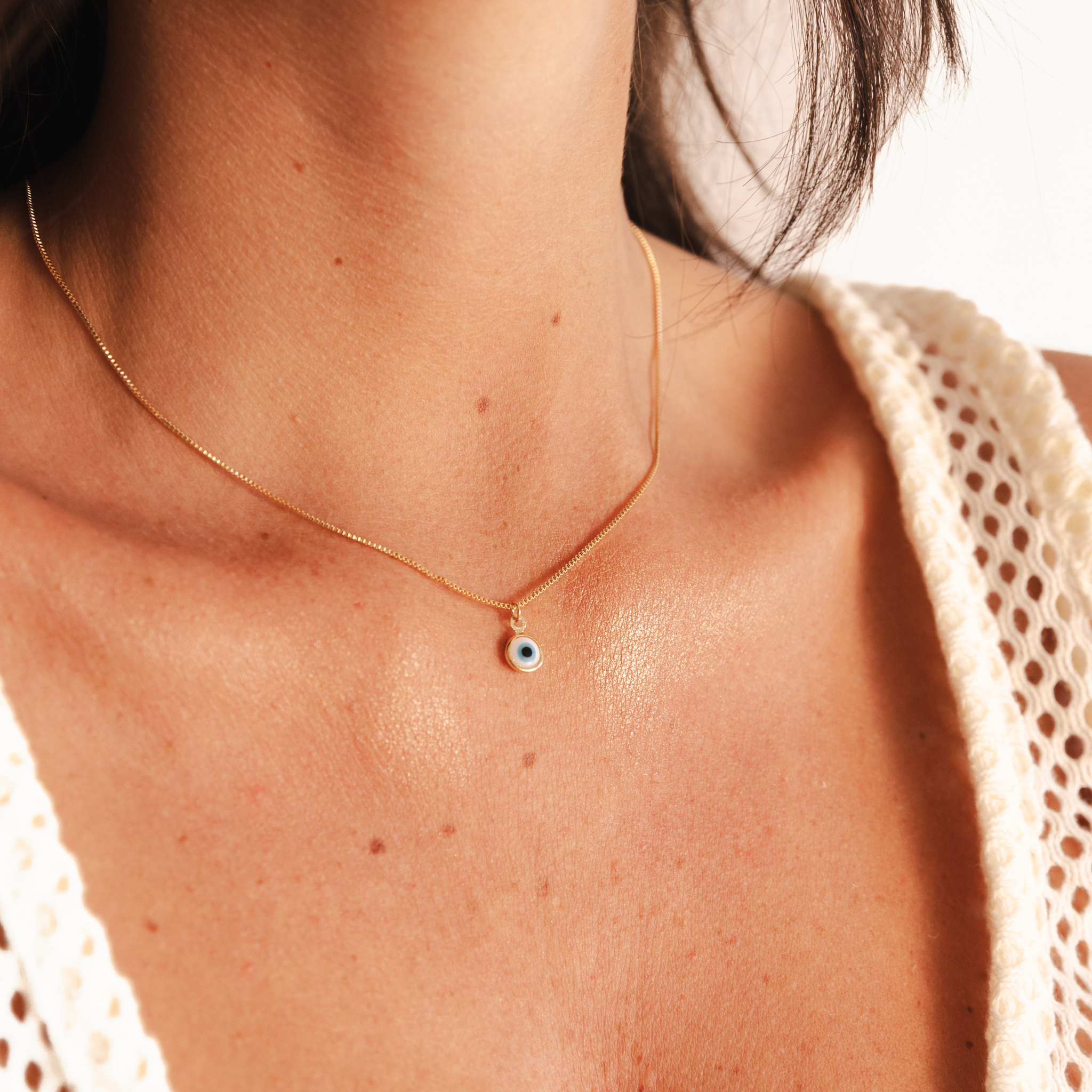 O pingente de olho grego dá um charme extra, trazendo não só beleza, mas também um símbolo de boa sorte e proteção. Com um design delicado e elegante, é perfeito para quem ama acessórios que fazem a diferença.