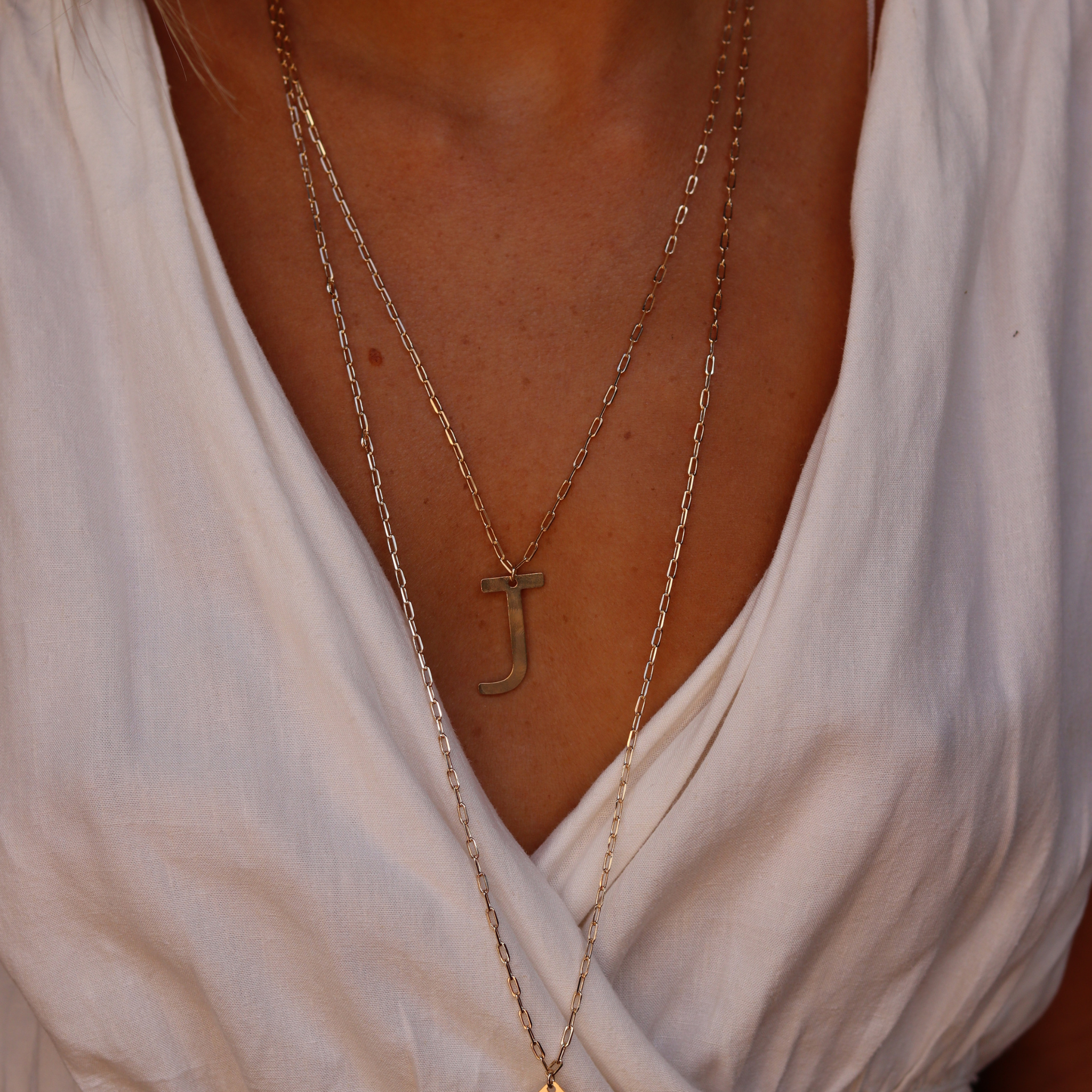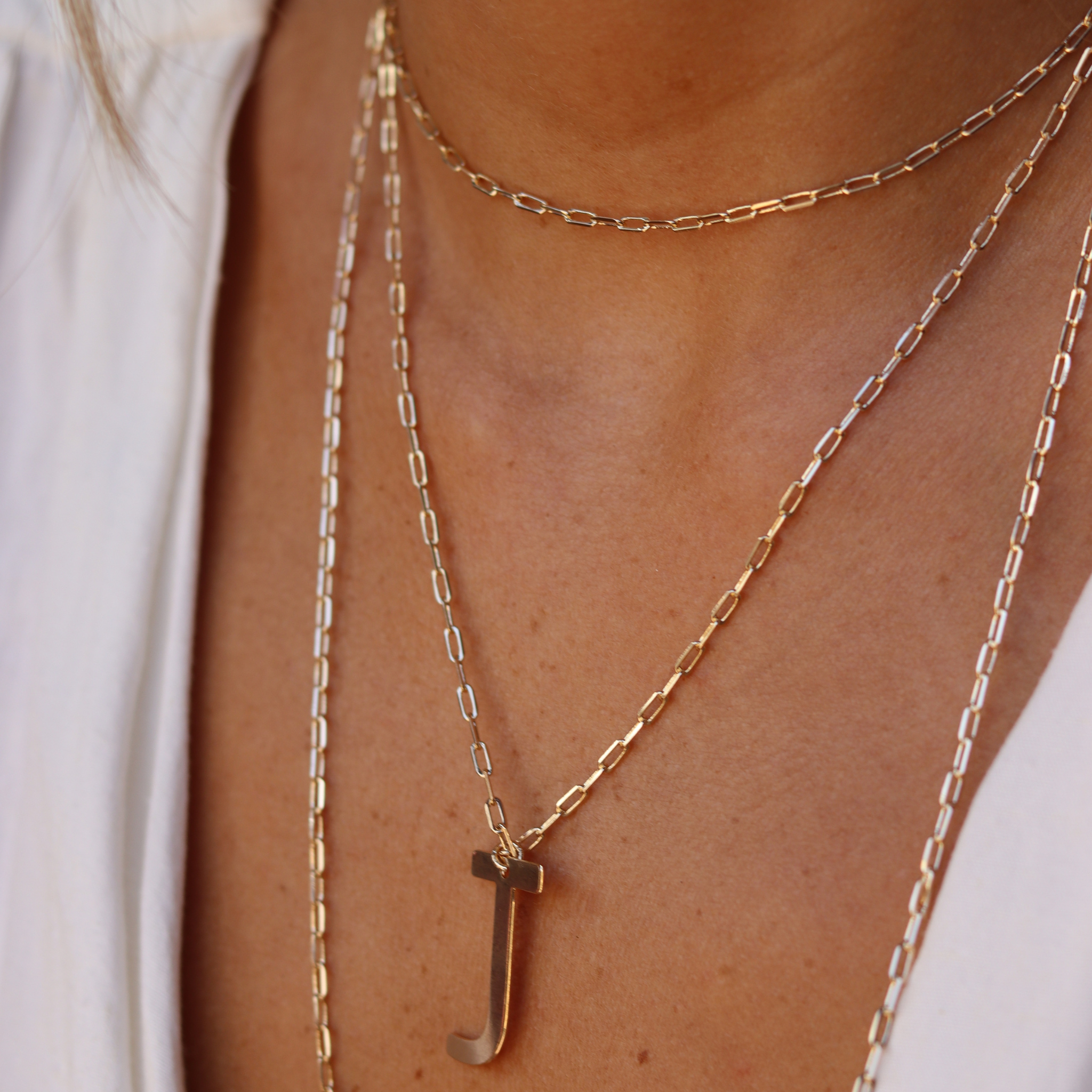 e a terceira é dando 2 voltas no colar e fazer ele ficar com 2 camadas: uma choker e um colar médio e ajustar a posição da letra.