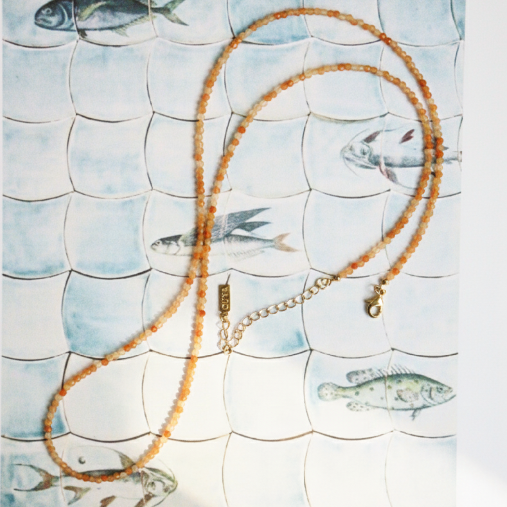 O Colar Maraú é o colar de pedras naturais pequenas, com comprimento longo, feito para acompanhar seus looks de verão. Ele funciona perfeitamente com os nossos charms foscos da collab GUYA + olivia, que são maiores e ricos em texturas e detalhes, criando mixs lindos e elegantes.