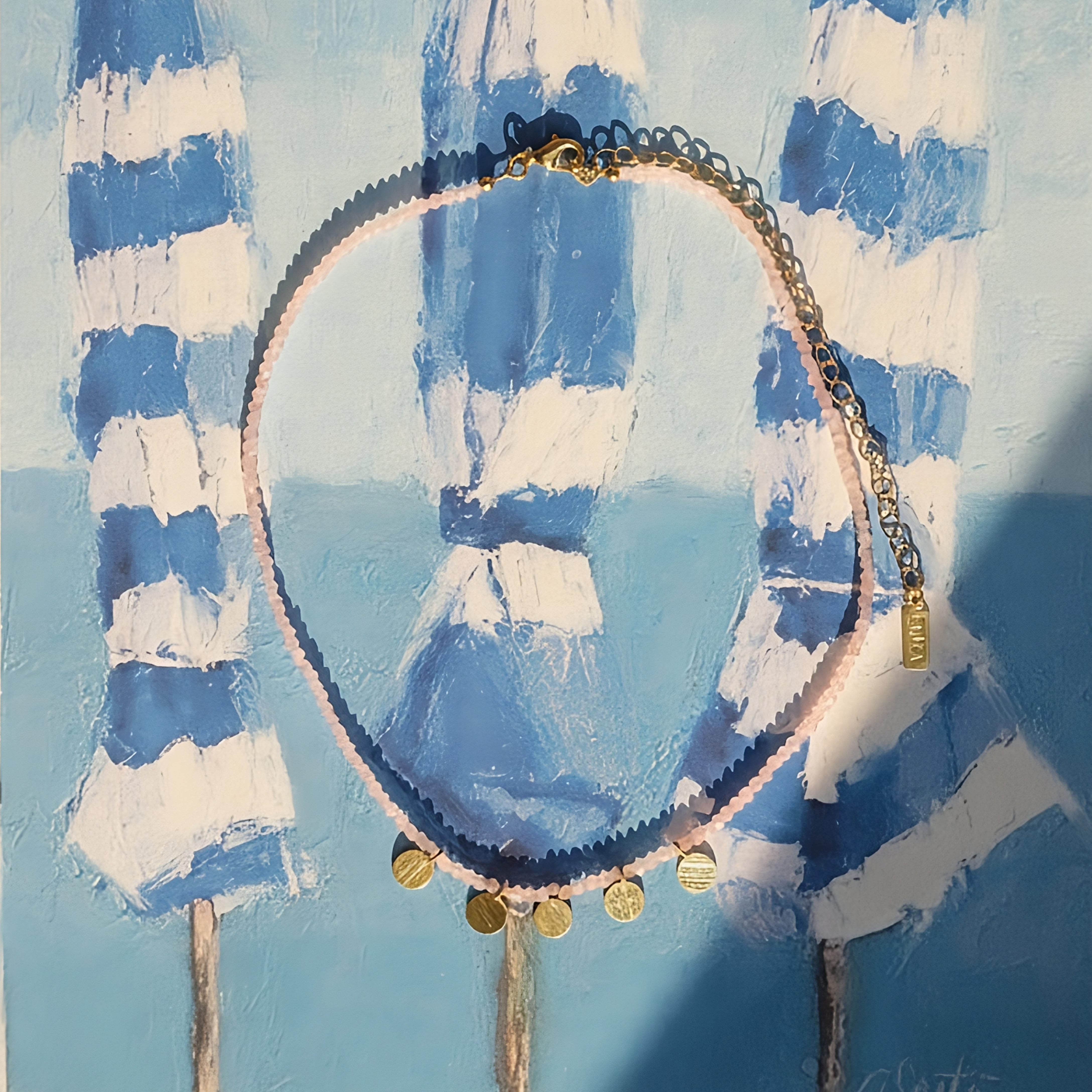 O Colar Noronha é o nosso colar de pedras que traz o clima de verão. Ele possui 5 mini-discos dourados na frente da corrente, semi foscos e texturizados, adicionando um detalhe divertido para o visual. As pedras naturais conferem um ar mais orgânico para as peças. Com comprimento curto, funciona perfeitamente como choker e é o par ideal do nosso Colar Maraú. Juntos, formam o mix colorido que dá vida a qualquer look.