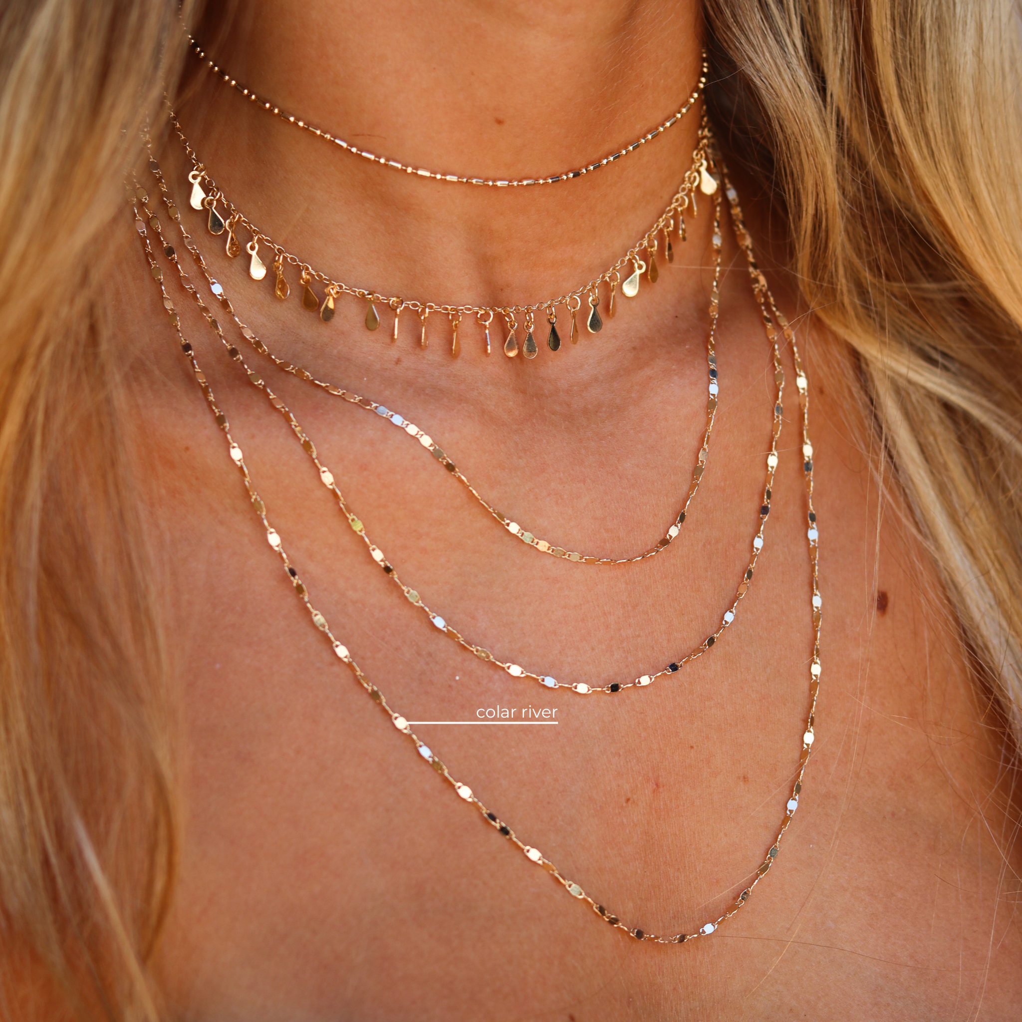colar longo de corrente diamantada. ele é longo o bastante para você dar 2 ou até 3 voltas.