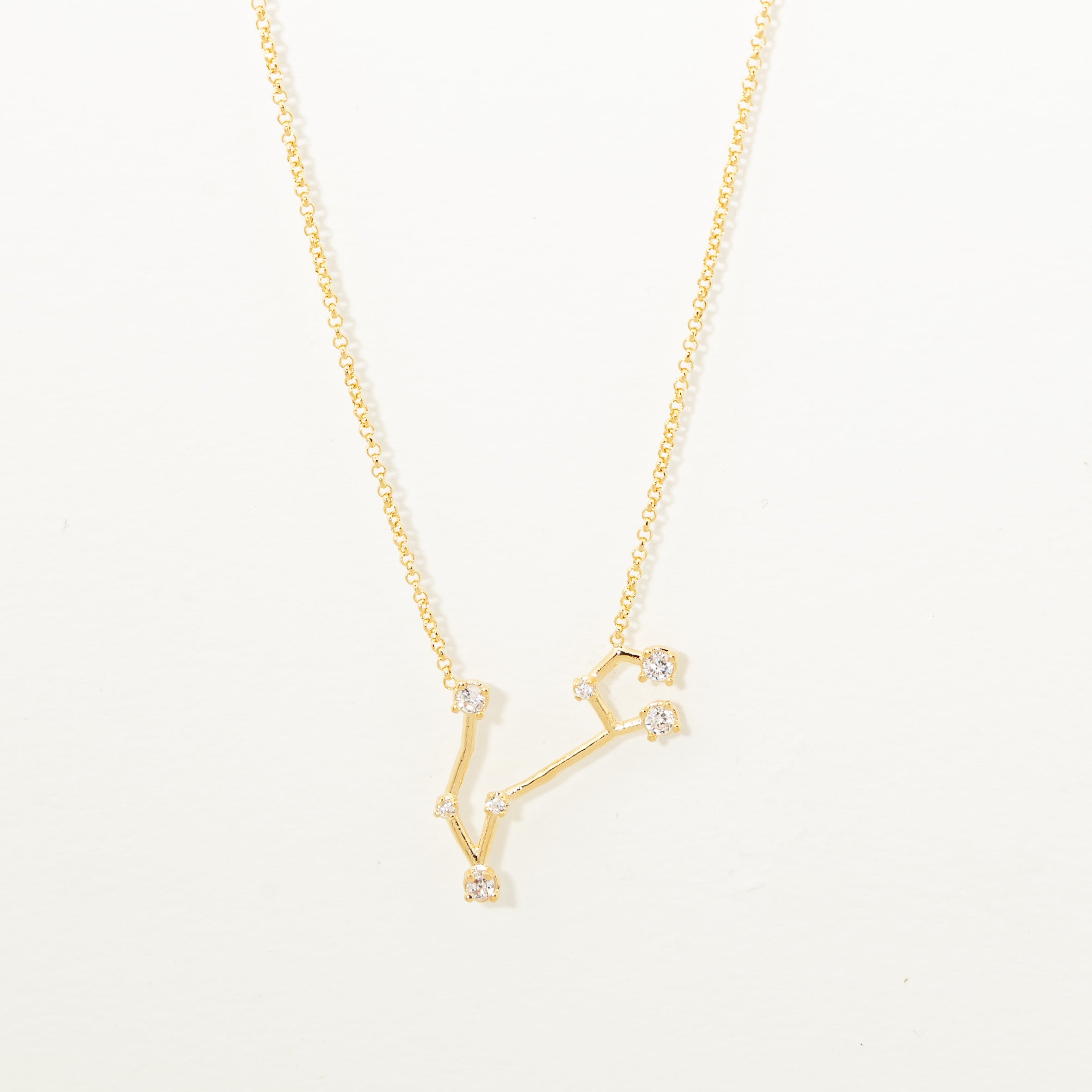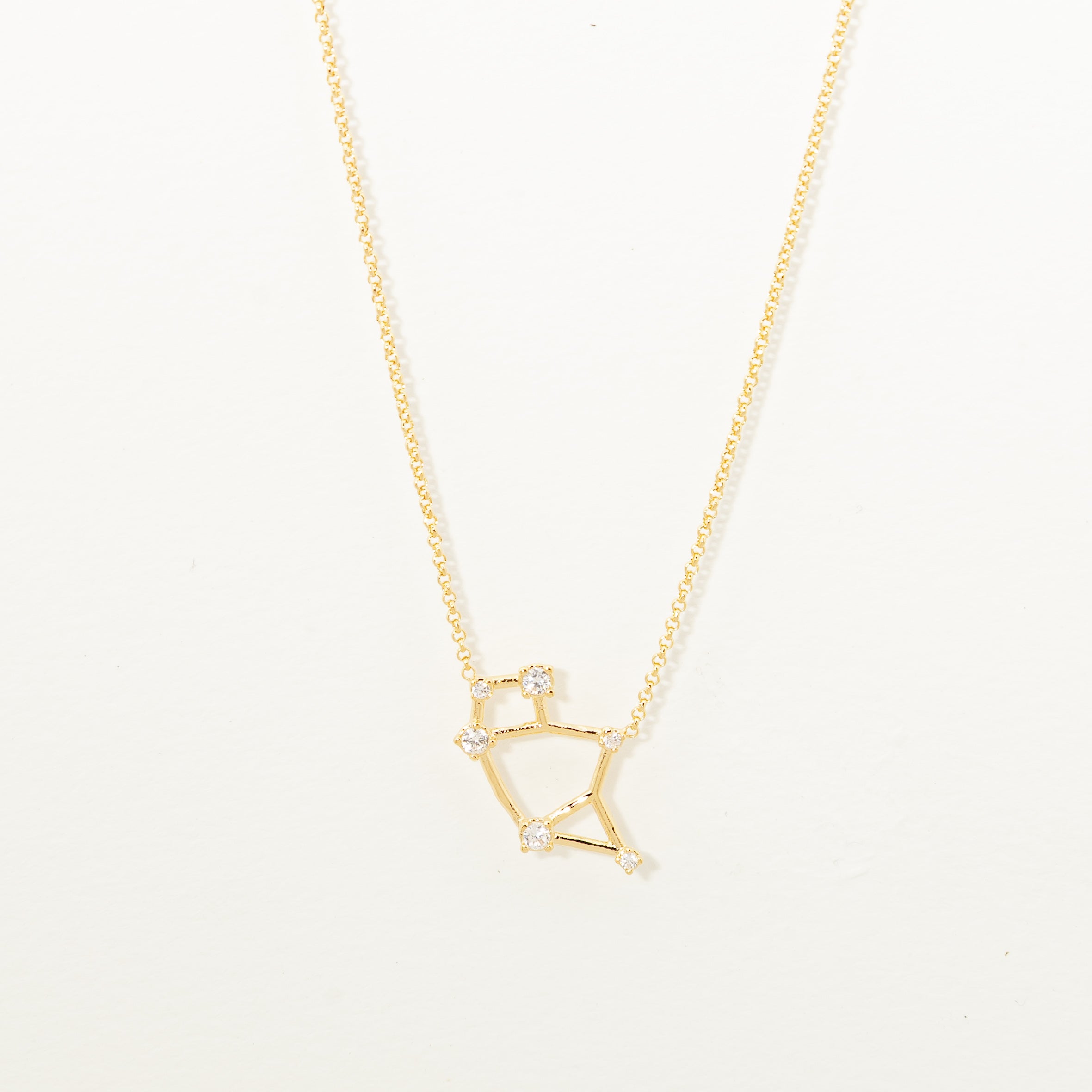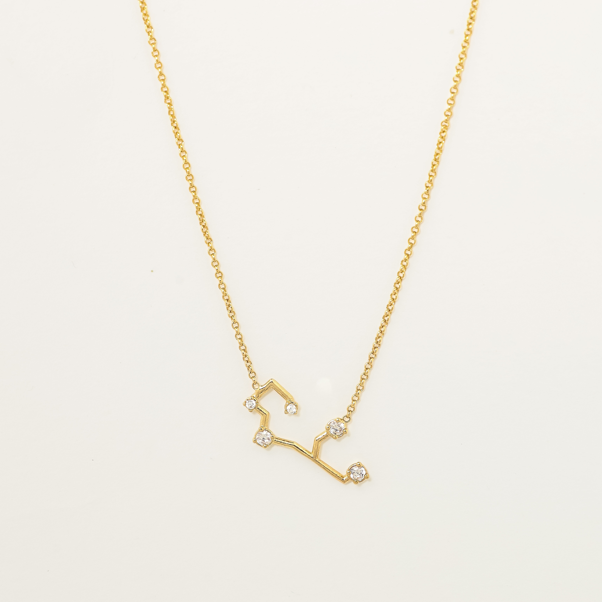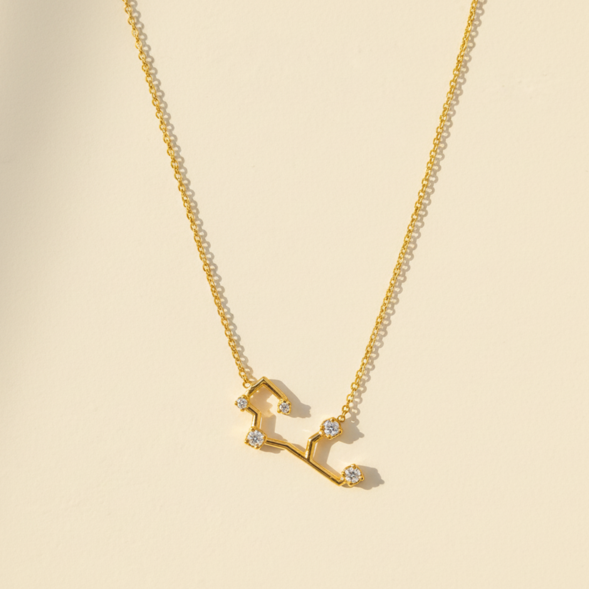 O Colar Zodiac é a estrela da nossa coleção! Banhado a ouro 18k, ele traz o desenho delicado da constelação do seu signo, com mini cristais de zircônia cravejados que formam cada ponto do céu. A constelação é soldada diretamente na corrente, garantindo um acabamento elegante e atemporal.