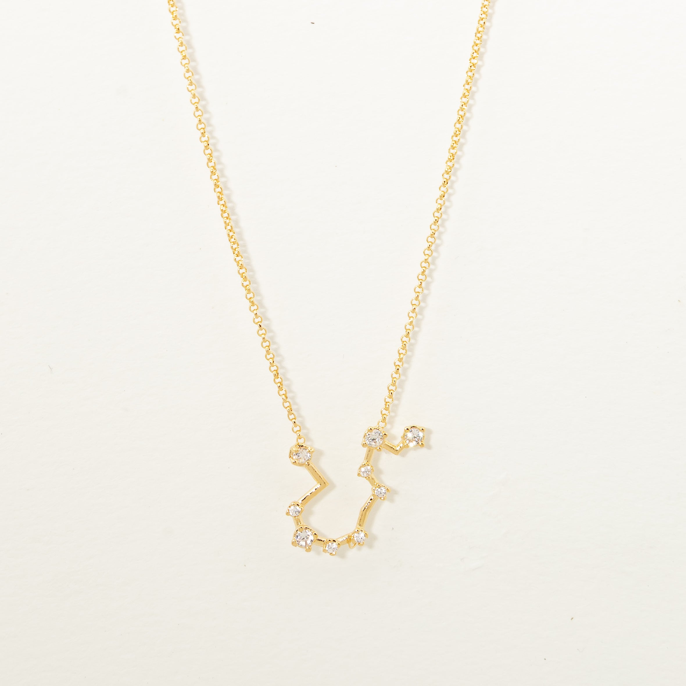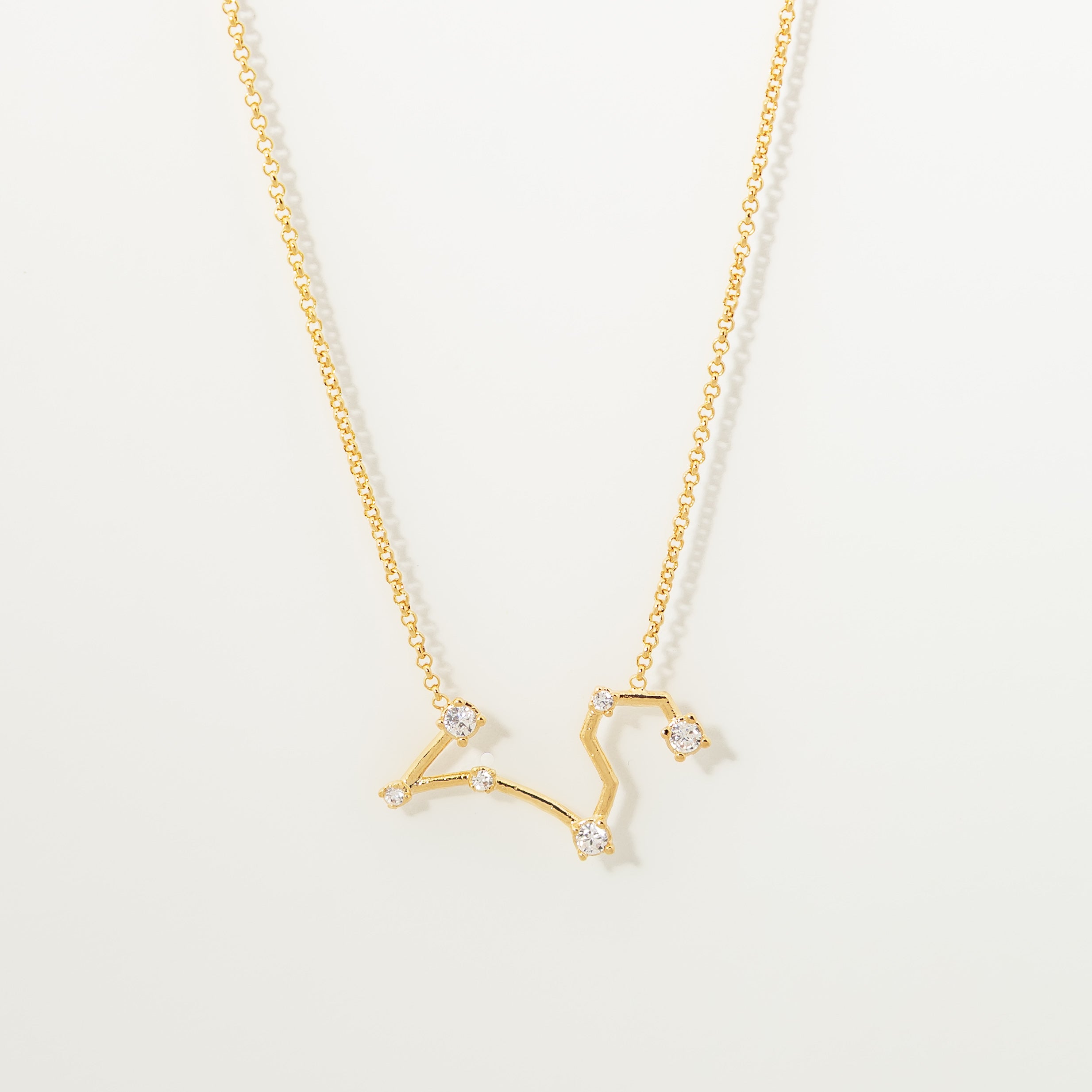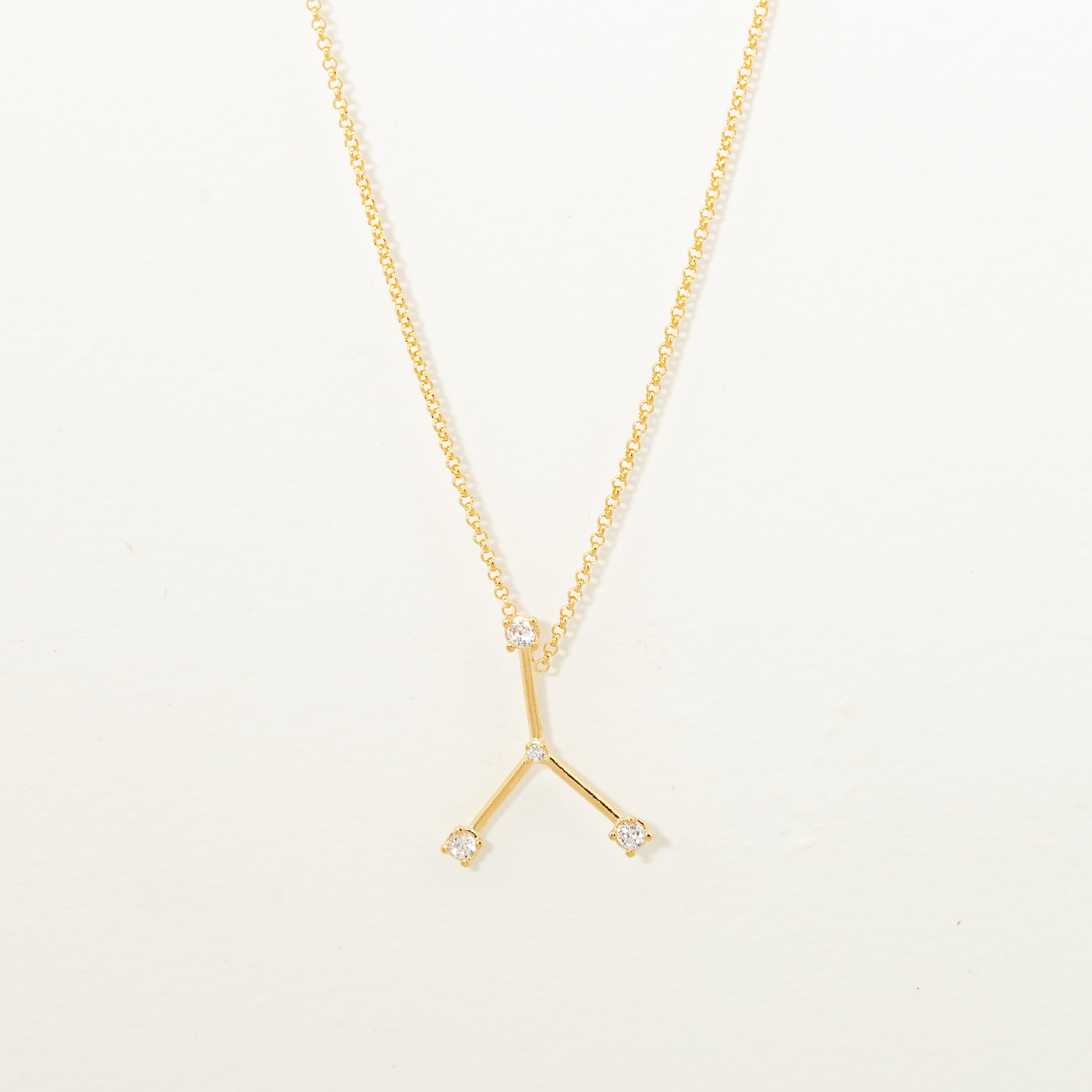O Colar Zodiac é a estrela da nossa coleção! Banhado a ouro 18k, ele traz o desenho delicado da constelação do seu signo, com mini cristais de zircônia cravejados que formam cada ponto do céu. A constelação é soldada diretamente na corrente, garantindo um acabamento elegante e atemporal.