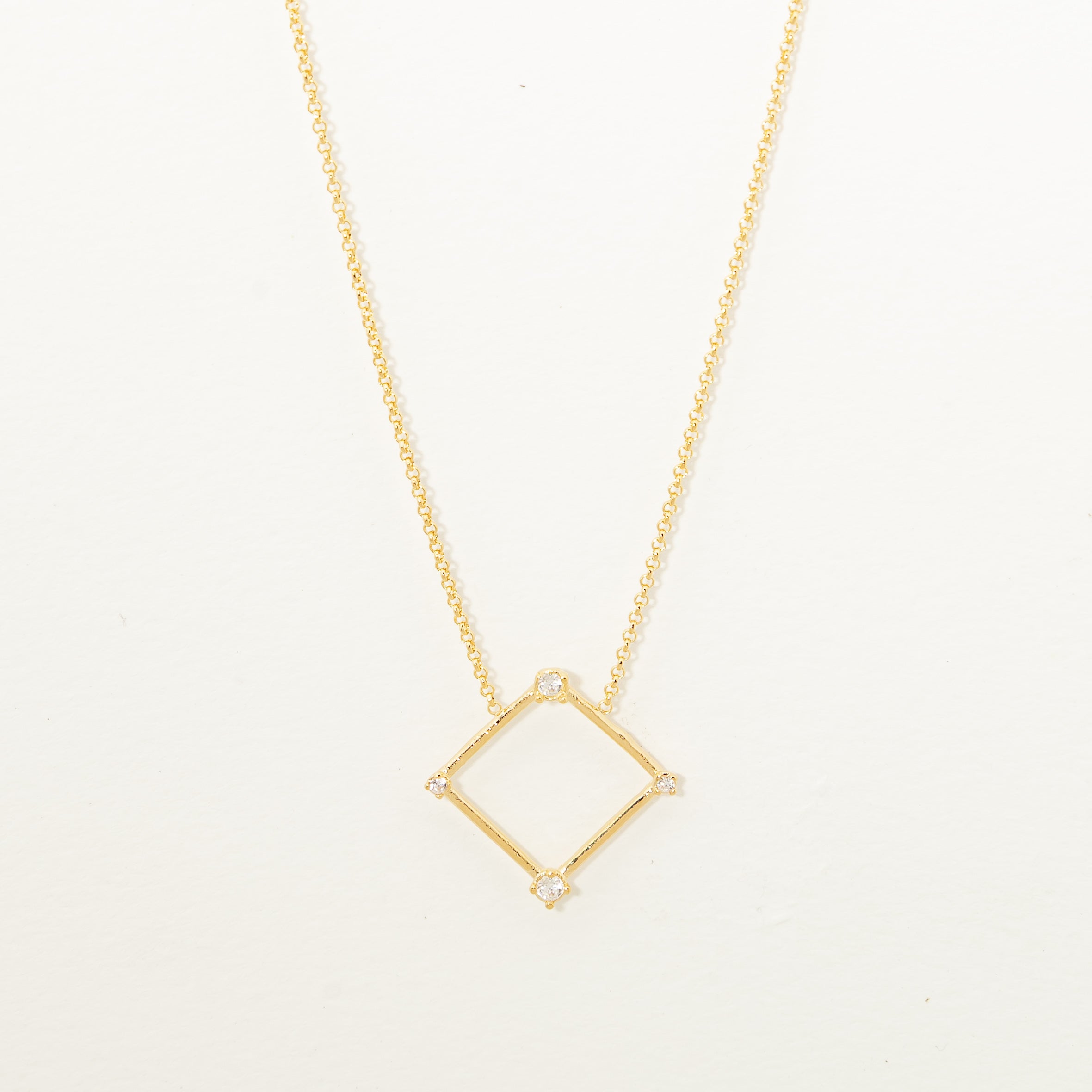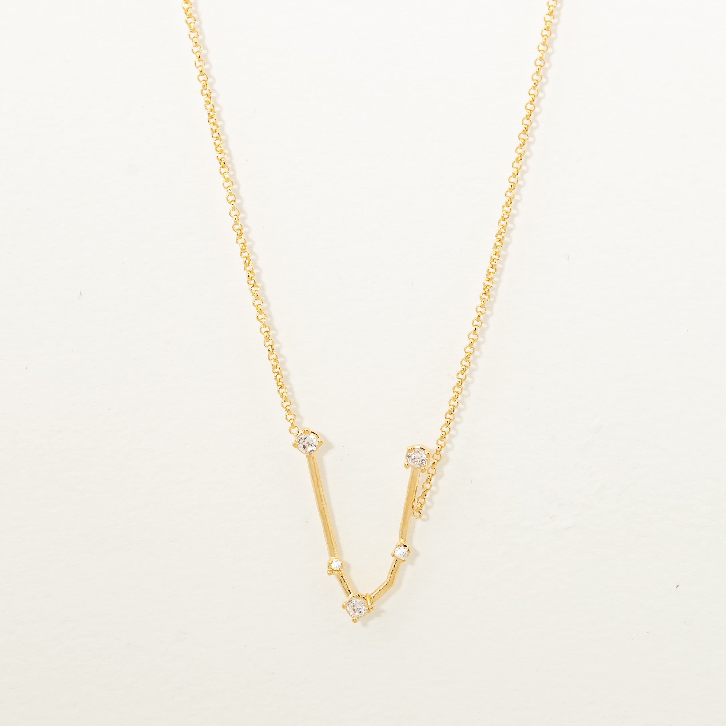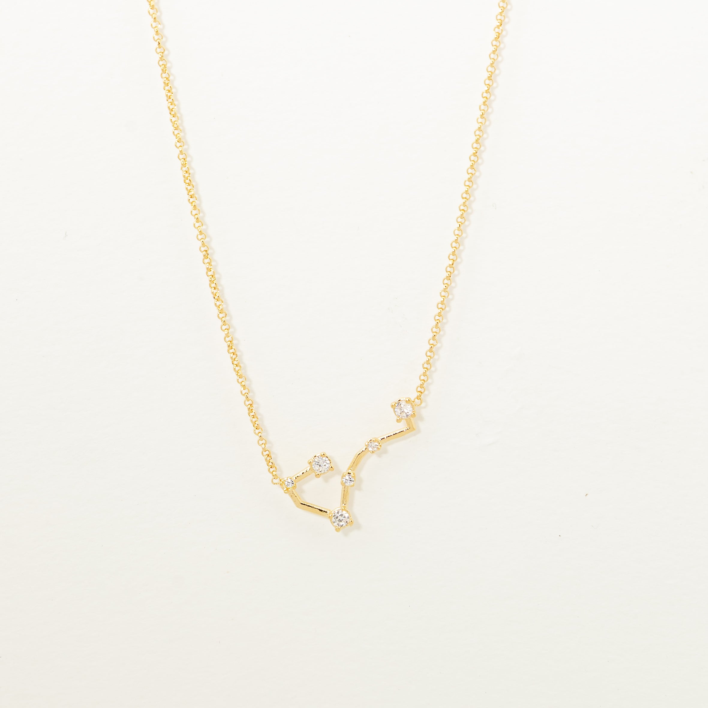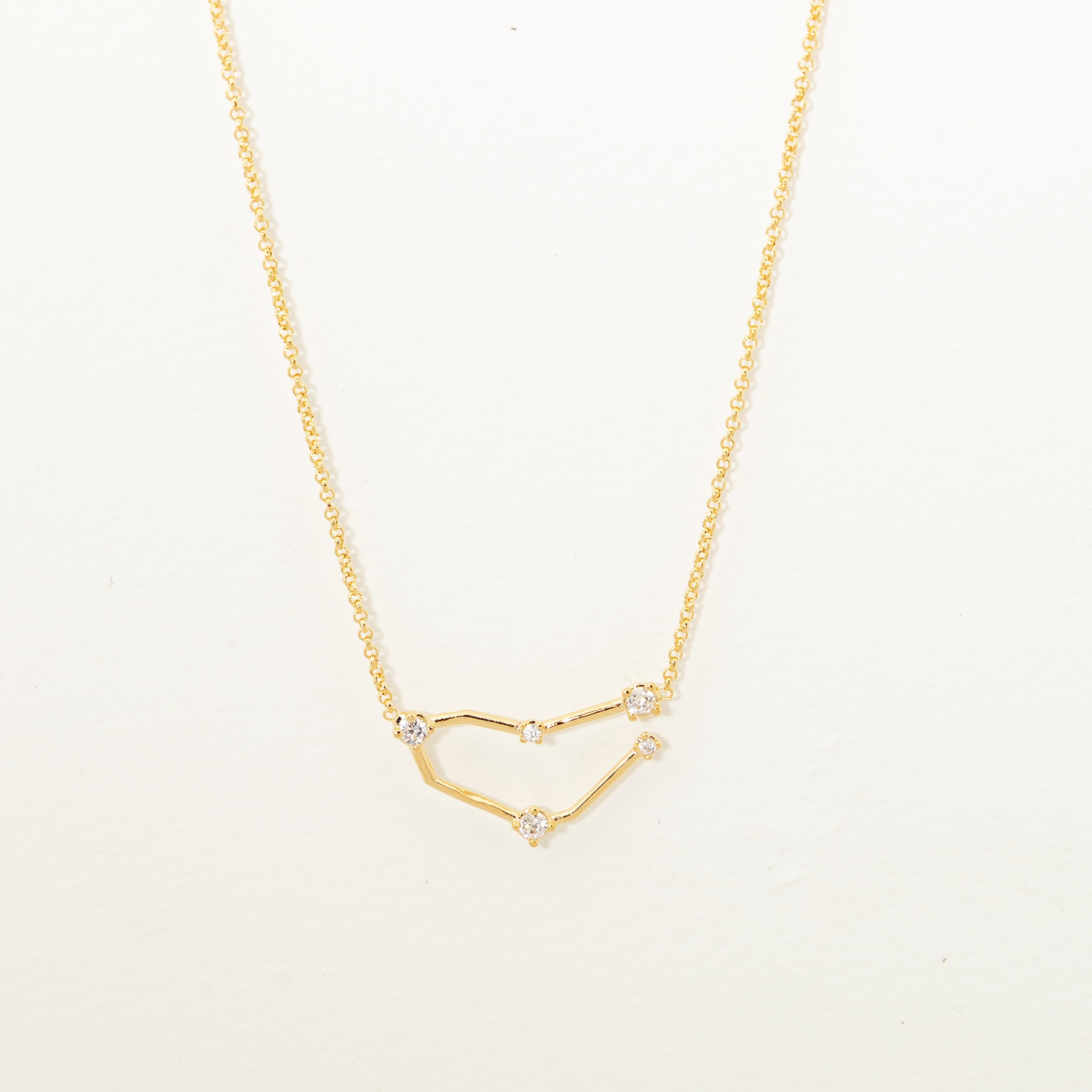 O Colar Zodiac é a estrela da nossa coleção! Banhado a ouro 18k, ele traz o desenho delicado da constelação do seu signo, com mini cristais de zircônia cravejados que formam cada ponto do céu. A constelação é soldada diretamente na corrente, garantindo um acabamento elegante e atemporal.