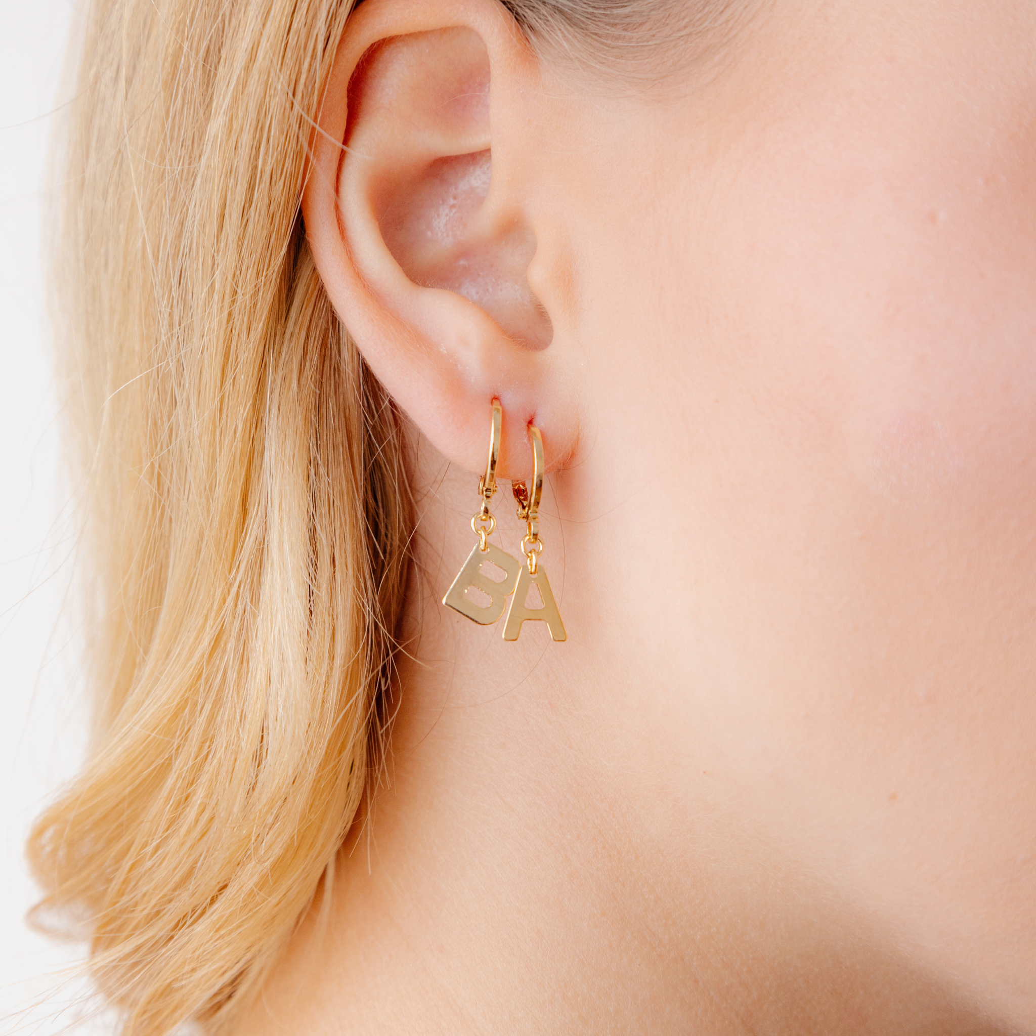 mini argolinha de inicial banhado a ouro 18k com película de proteção contra alergias.
