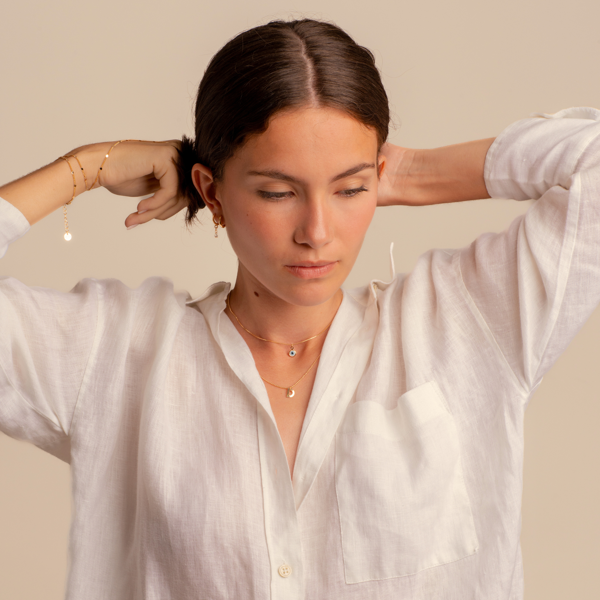 Peças banhadas a ouro 18k com película de proteção contra alergias.