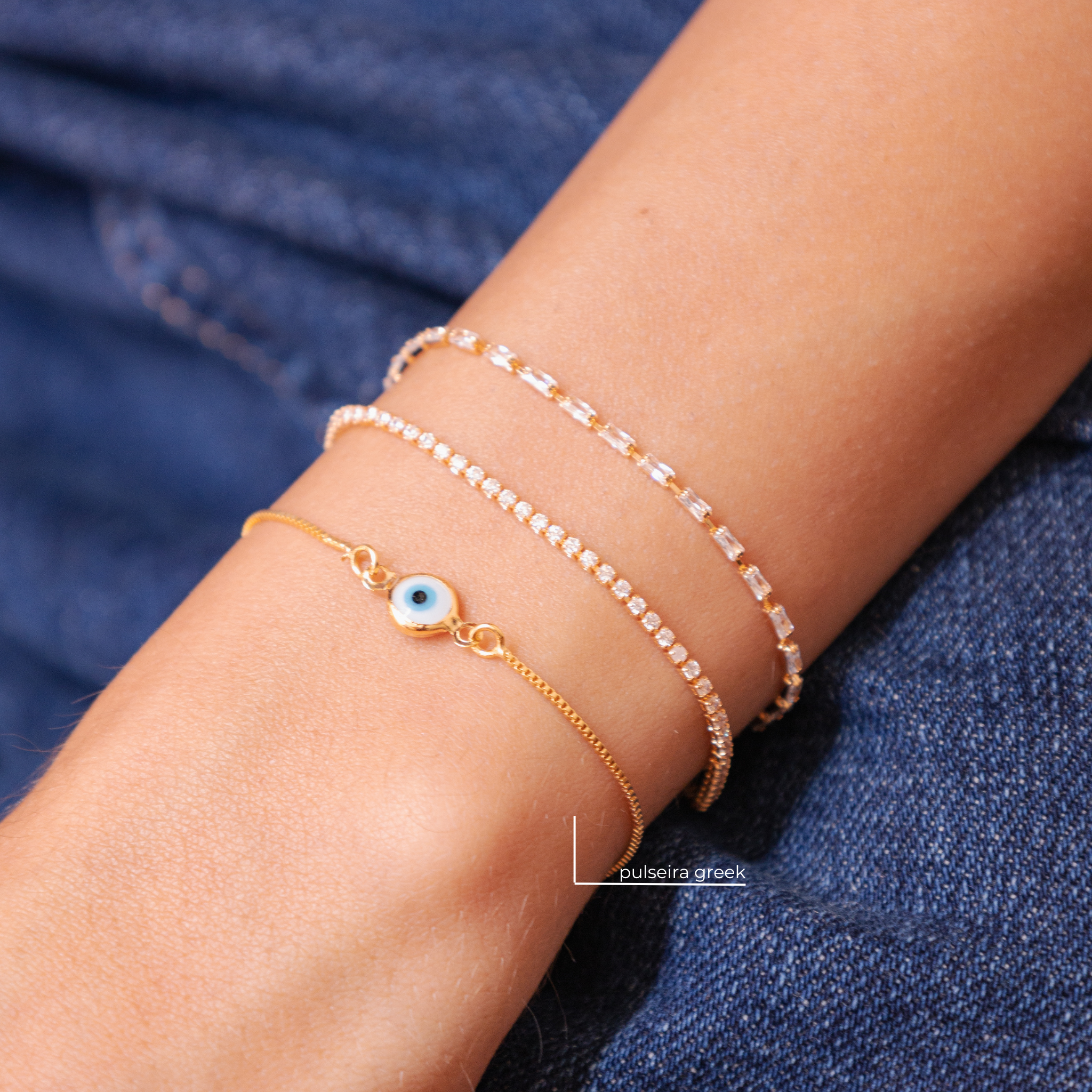 Pulseira banhada a ouro 18k com película de proteção contra alergias.
