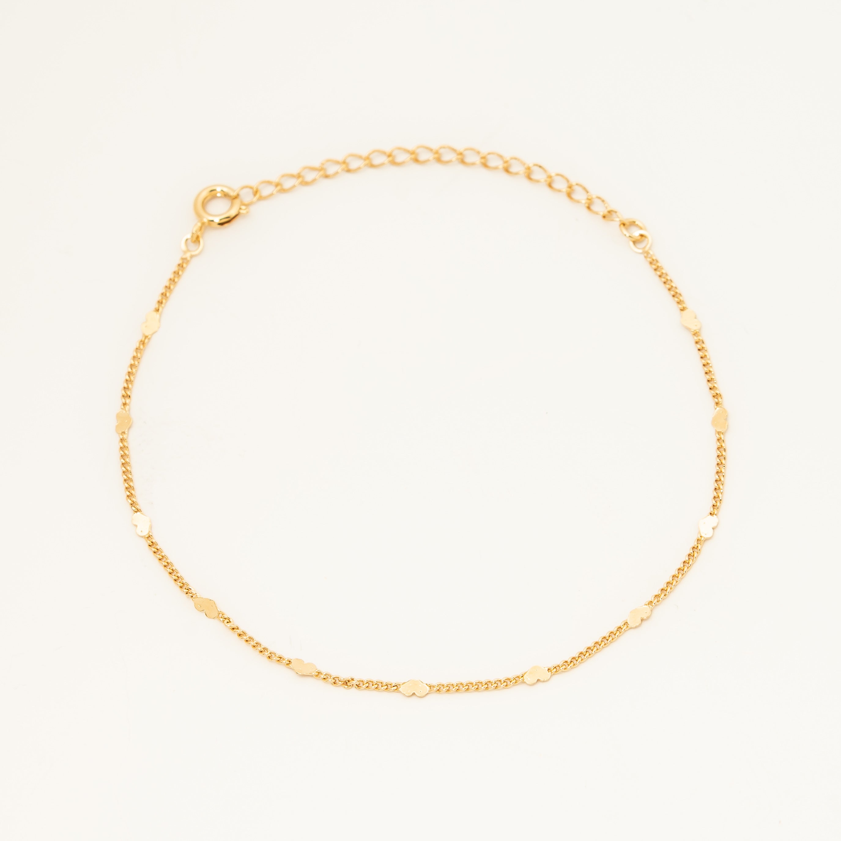 Pulseira Little Hearts é delicada com pequenos corações dourados na corrente. Ela é fininha, leve e banhada a ouro — o acessório perfeito pra usar no dia a dia.