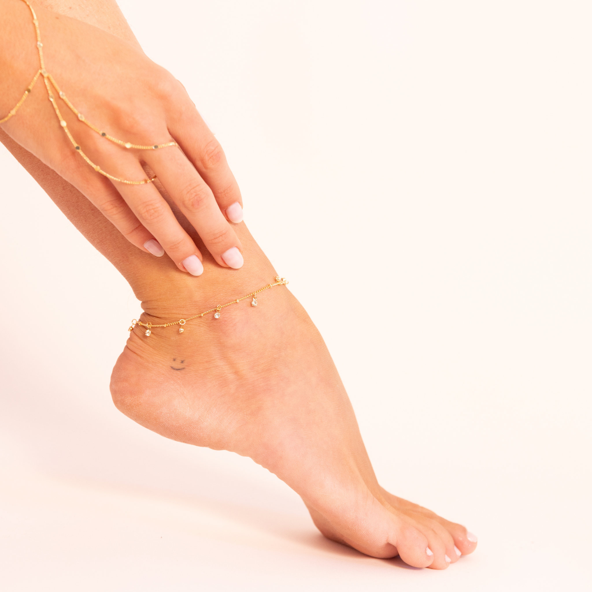 A Tornozeleira Sparkle ilumina o tornozelo com um brilho que reflete a luz. Versátil, ela combina facilmente com dia e noite, trazendo um toque super especial pra qualquer look. Combine com o Bellychain Sparkle! Amamos usar a tornozeleira com salto alto para as festas de Carnaval.